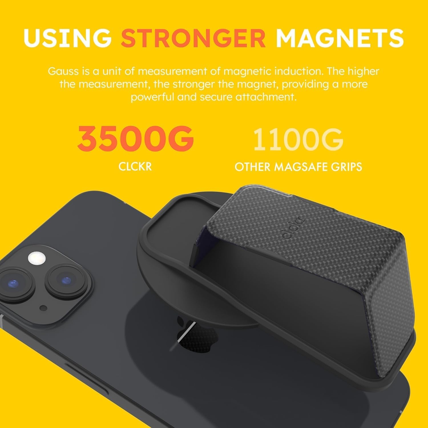 - ๐ฆ๐๐ฟ๐ผ๐ป๐ด๐ฒ๐๐ ๐ ๐ฎ๐ด๐ป๐ฒ๐ ๐๐ฟ๐ถ๐ฝ, The only MagSafe kickstand to provide an unmatched 7.7lbs (3.5 kg) magnetic force - equivalent to 15 iPhone 16 Pro Max units. With 3X magnetic strength and full MagSafe case compatibility you have no more worries about complicated installations or phone drops!
