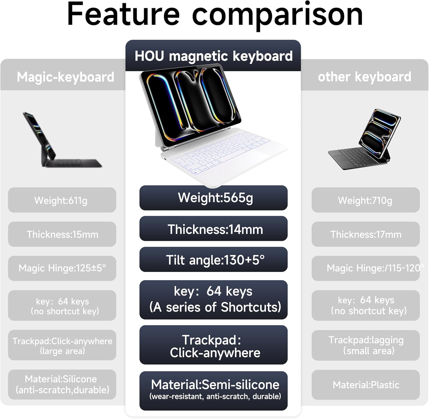 HOU iPad Pro 11 Inch Case with Keyboard(M4,2024,ONLY),iPad Pro 11 Inch (5th Gen) Keyboard Case,Multi-Touch Trackpad,7 Colors Backlight,Easy-Set Magnetic Stand,QWERTY White
