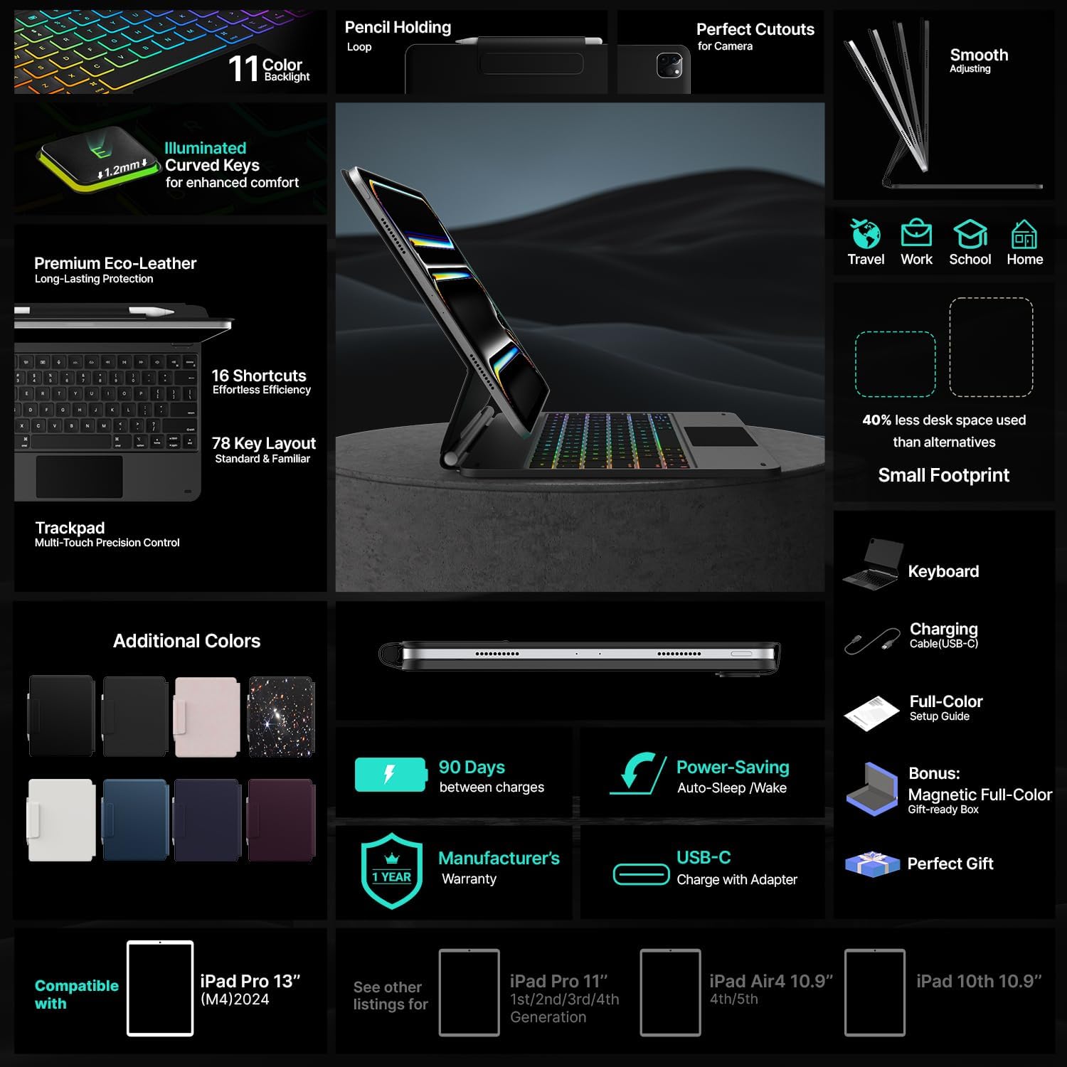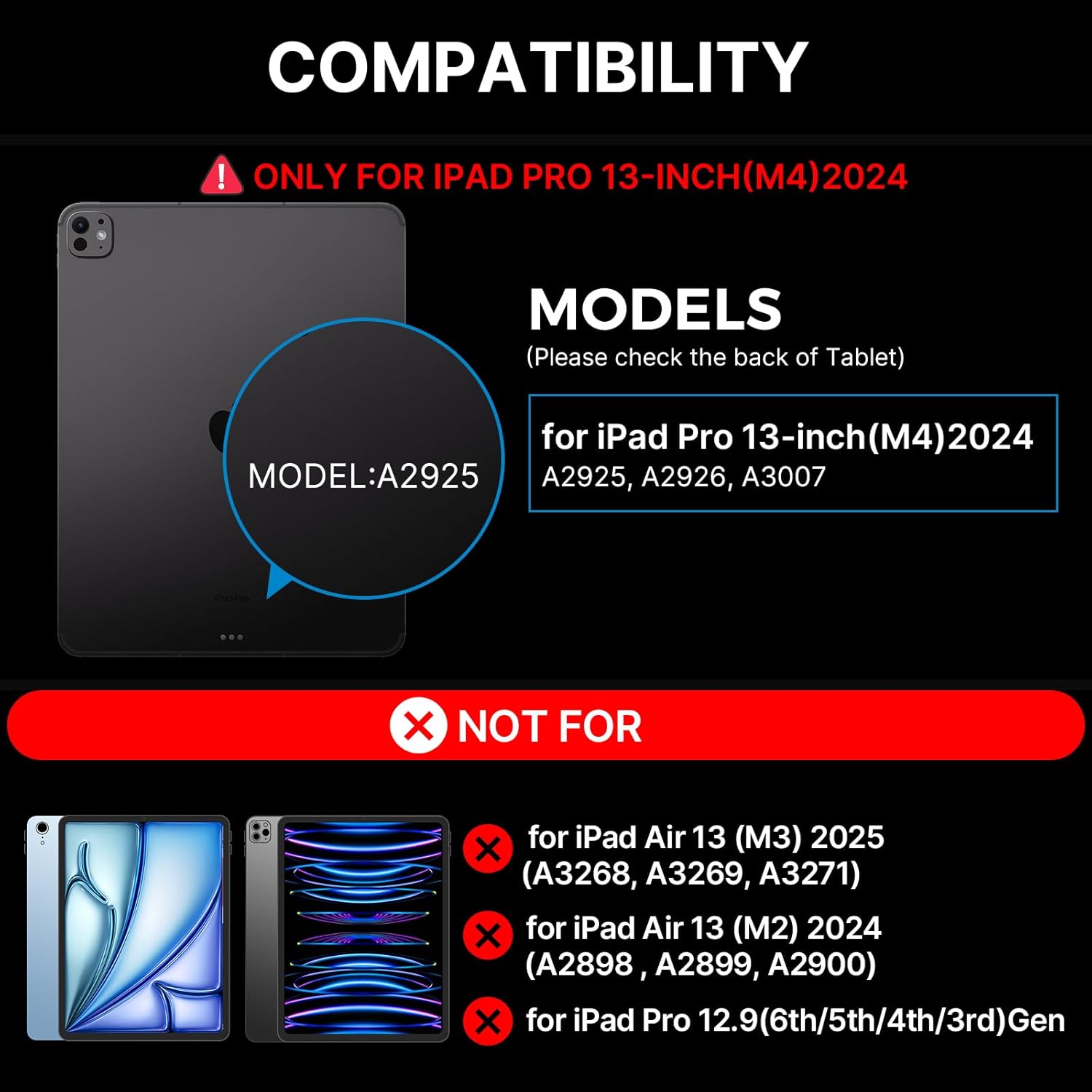 - ๐๐ผ๐บ๐ฝ๐ฎ๐๐ถ๐ฏ๐ถ๐น๐ถ๐๐: Elevate your iPad Pro 13 inch (M4) 2024 experience with our versatile keyboard case. models include 2024 iPad Pro 13 inch(A2925,A2926,A3007);NOTE:NOT FIT FOR IPAD AIR 13(M3 2025 /M2 2024),Weโre happy to help! Reach out to us if you need to check compatibility.