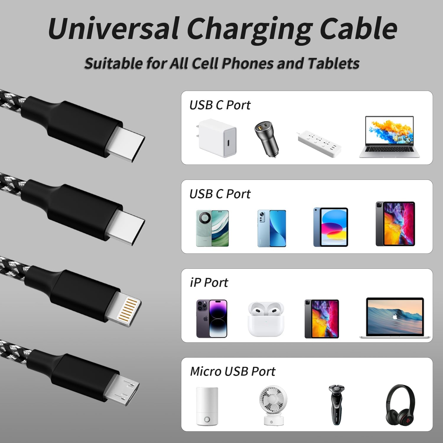 - Safe Charging is Above All: This usb c to multi charger cord is adopted *Thickened Tinned Copper Wire* to ensure safe and stable charging. Braided Nylon makes the multiple charging cable tangle-free, and the high-quality aluminum housing makes the multi charger cords resistant to heat and corrosion