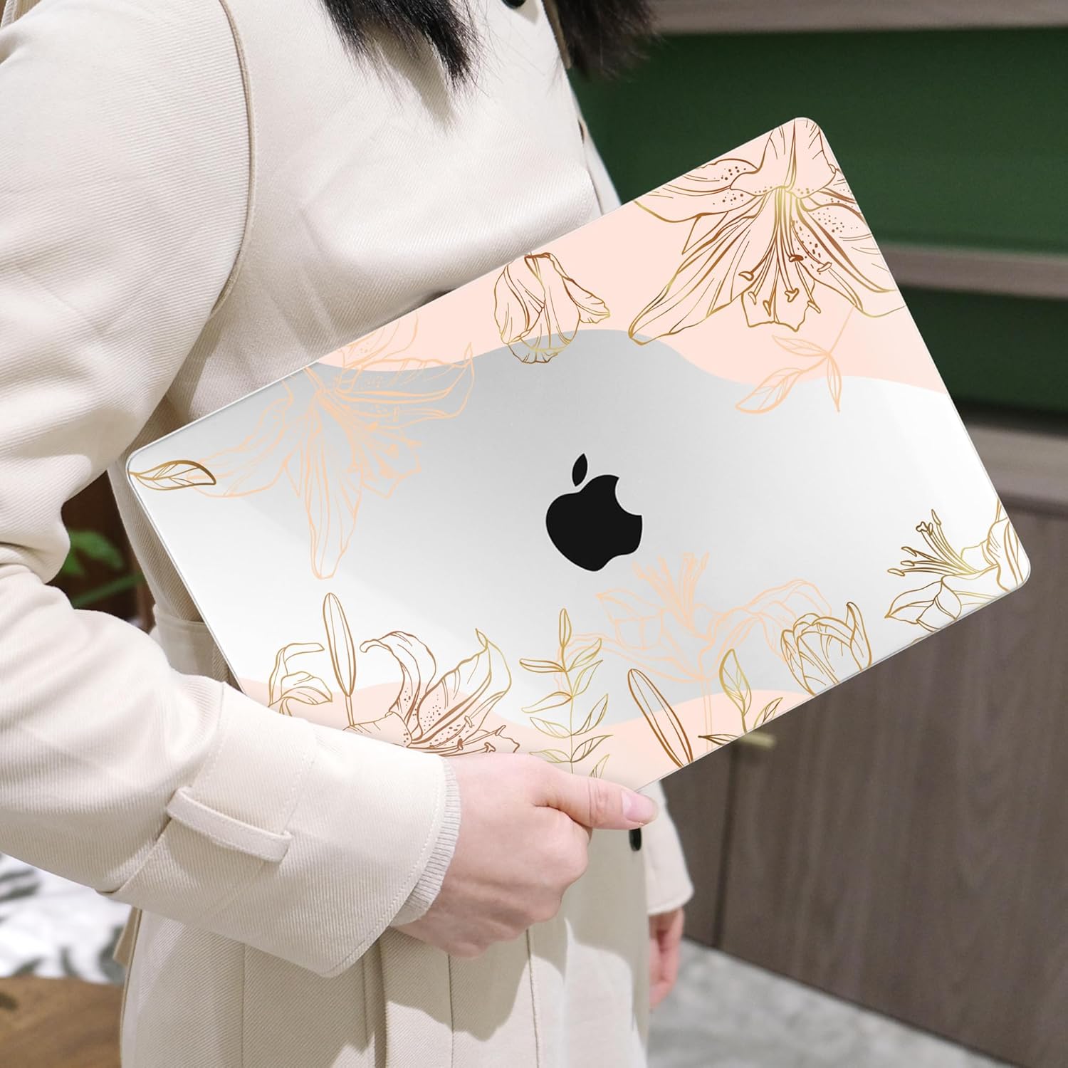 MEEgoodo Case for MacBook Pro 13 inch Case 2022 2021 2020 New A2338 M2/M1 A2251 A2289,Laptop Hard Shell Cases with Keyboard & Camera Cover Compatible with 13.3 inch MacBook Pro, Gold Flowers Lilies
