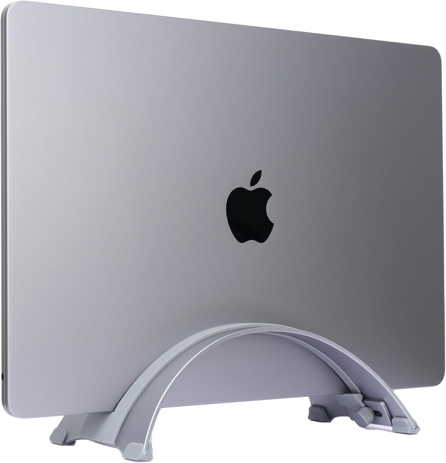 Adjustable Vertical Laptop Stand - 6061 Aluminum, CNC Precision, Anodized Finish, Fits All Laptops Including 17-inch, Ventilated Design, Anti-Slip Silicone Pads, ARC Shaped Stands