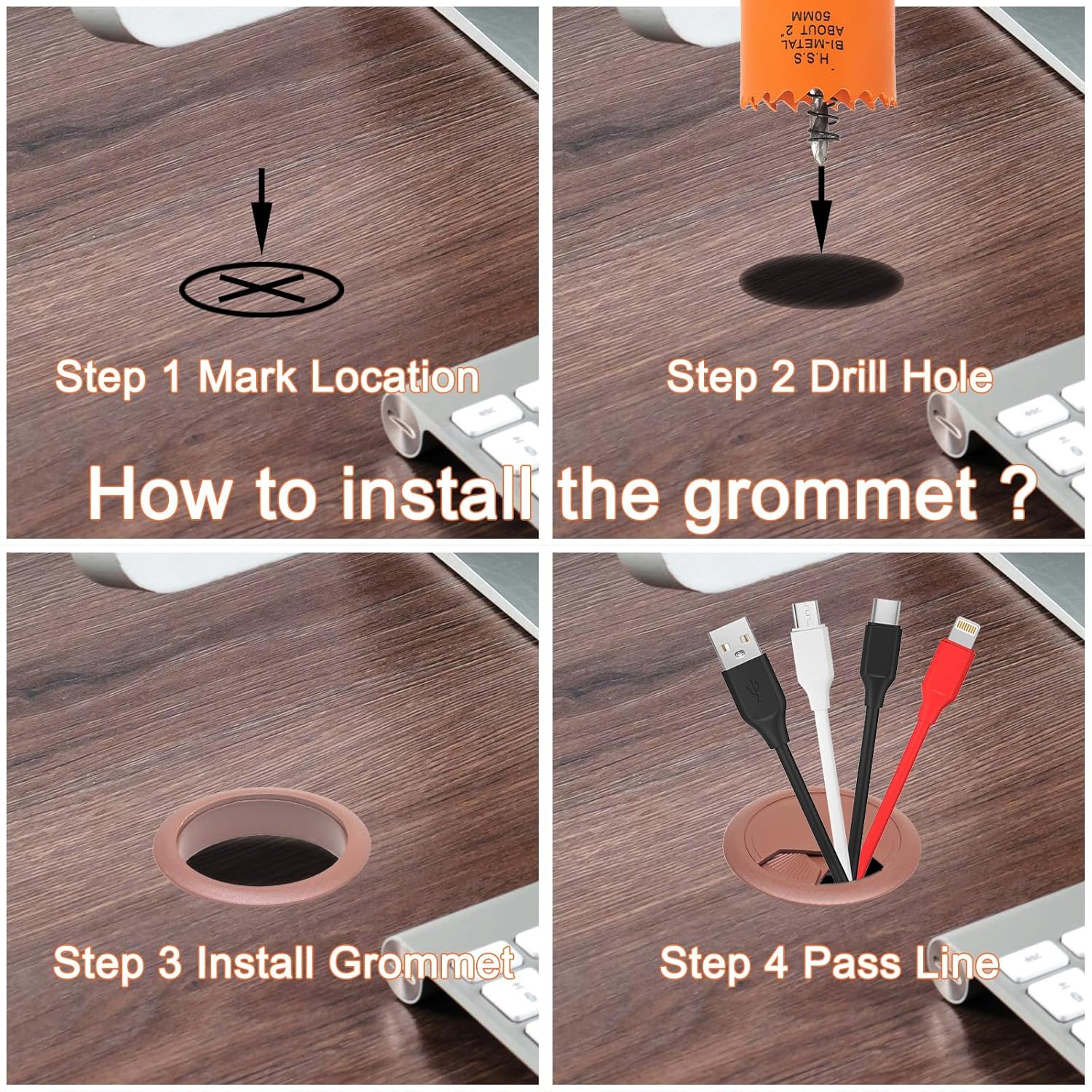 - Easy to Use: First assemble the hole saw, then drill hole on the desktop, and finally install the grommets into the drilled holes