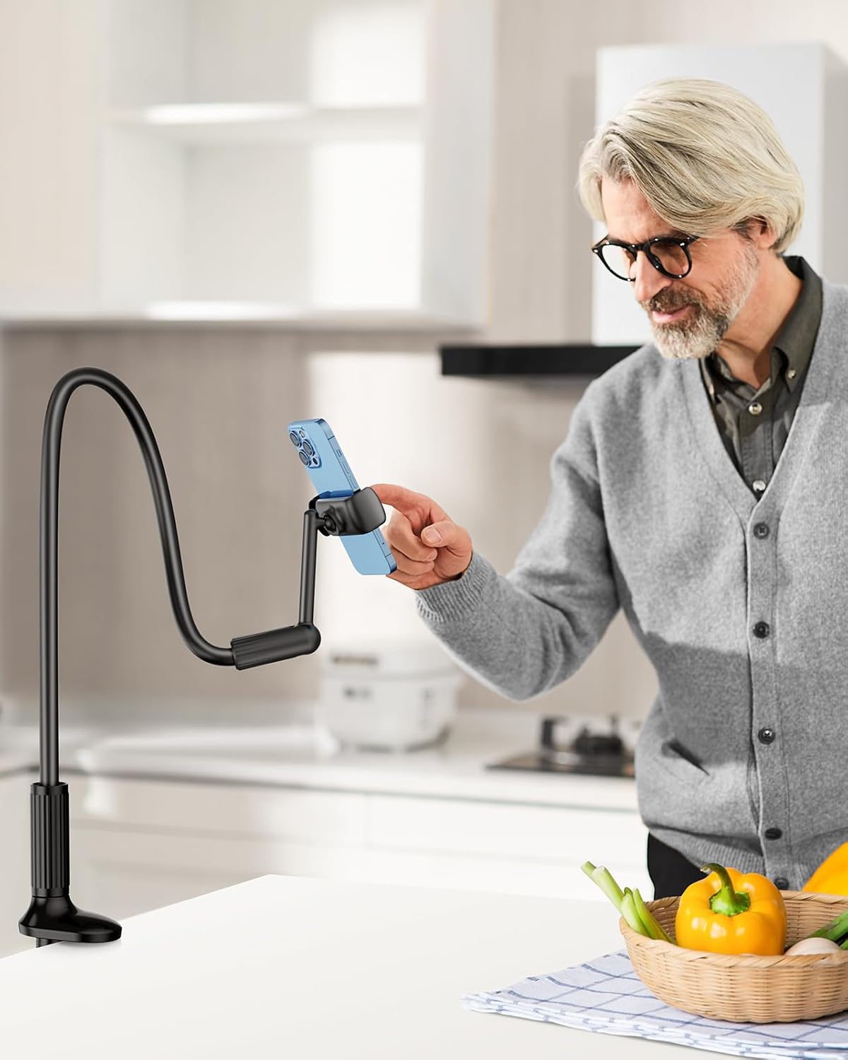 - Wide Compatibility: The cell phone lazy holder with a 360° adjustable clamp is compatible with 4.7-7'' devices, such as iPhone 16 15 14 13 12 16 15Pro 14Pro 13Pro 12Pro, Galaxy S10e Note 9, LG, Google Pixel, Moto, etc.