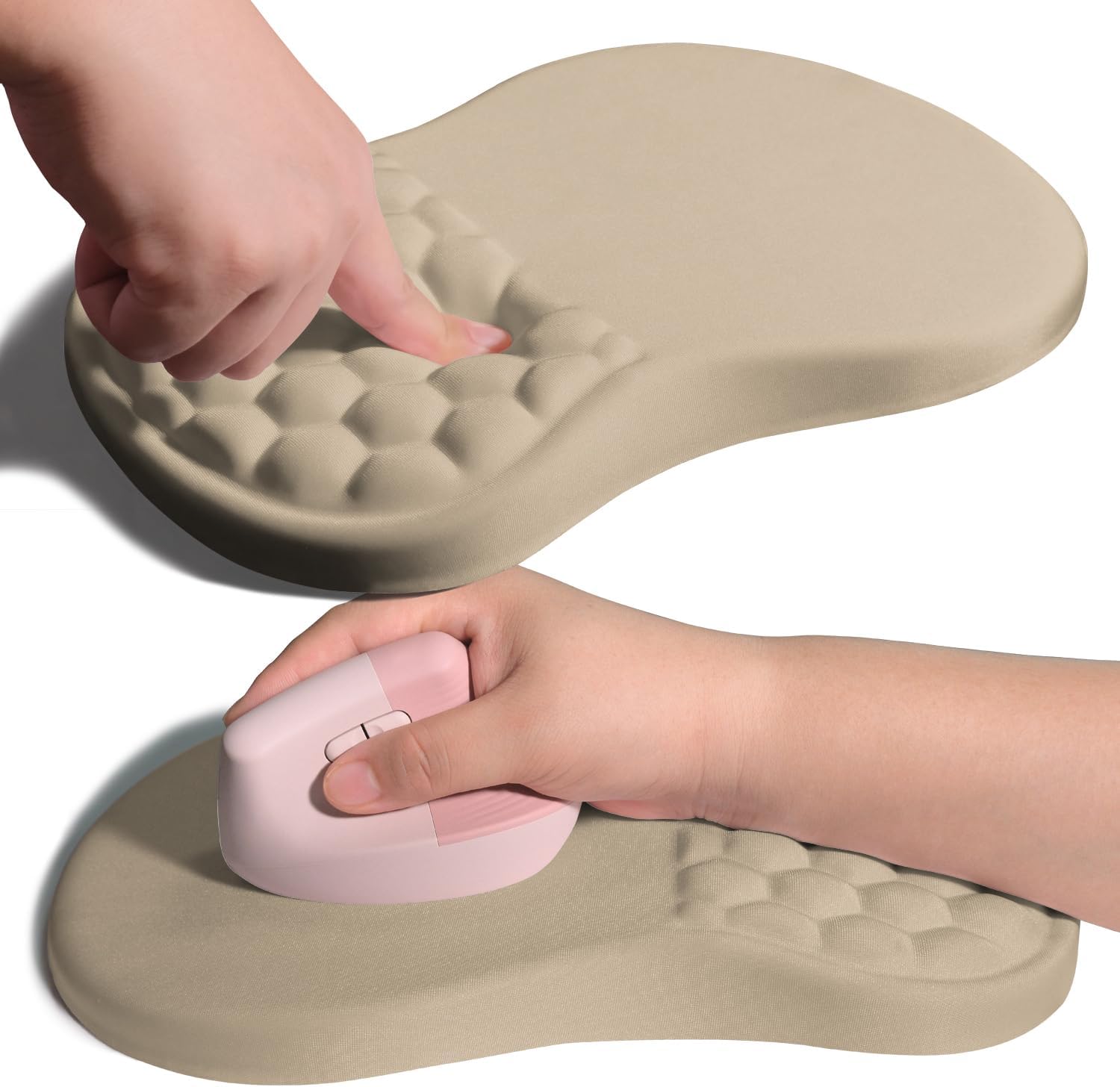 Ergonomic Joint Wrist Support Mouse Pad with Memory Foam Cushion Massage Bump, Carpal Tunnel Pain Relief Mousepad Slope Design for Wrist Rest, 11.8x7.9 in, Apricot