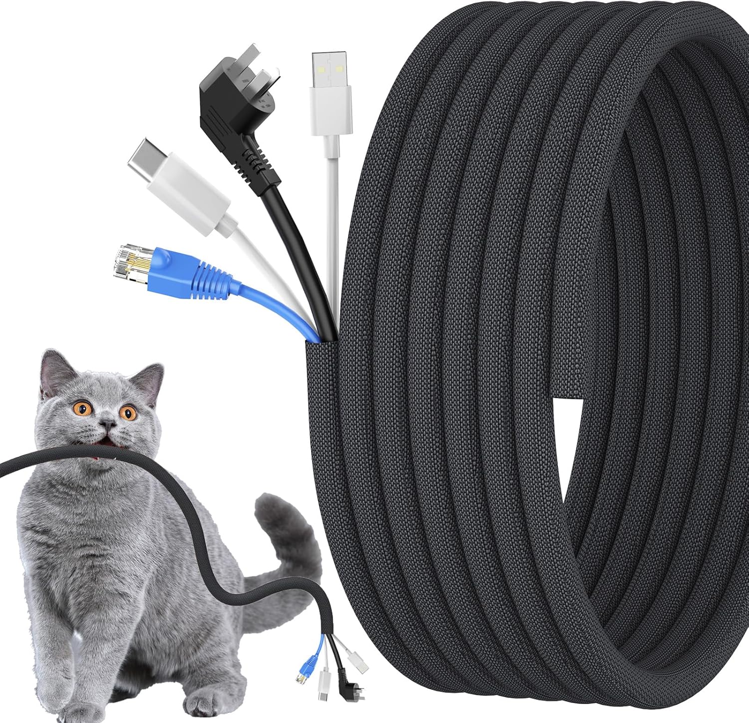 - Cord Covers for Pets : Wengus cable sleeve is made from non-toxic PET material, keeping pets like rabbits, dogs, cats, hamsters, gerbils from chewing cords, offering peace of mind for pet owners while protecting your electrical cords and cables