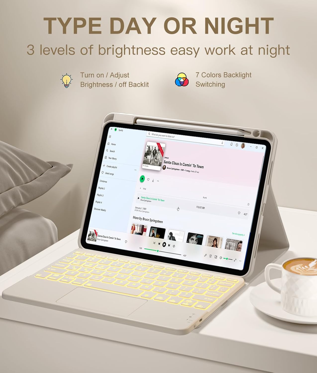 Compatible with iPad Air 11 Inch & Air 5th/ Air 4th Generation Case with Keyboard - Multi-Touch Trackpad, 7-Color Backlit, Detachable Folio Cover for Air 11-inch M3/M2 (2025/2024) (Starlight)