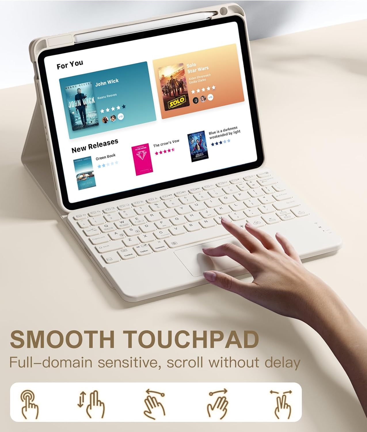 - ăMulti-Touch TrackpadăEnhance your productivity with the built-in high sensitive touchpad of the Harvopu for iPad air keyboard. Navigate, browse, and control your tablet with precision, making it easier to perform tasks without touching the screen, like editing documents, browsing the web, and managing applications smoother and more efficient.