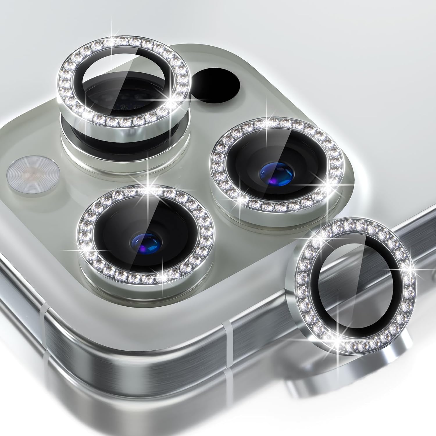 - Personalized Decoration: Made of high-quality aviation aluminum metal ring and 9H tempered glass and inlaid with bling rhinestones to give your 16 Pro/Pro Max camera lens a diamond gorgeous appearance, shining in the sun, very eye-catching and complimentary.