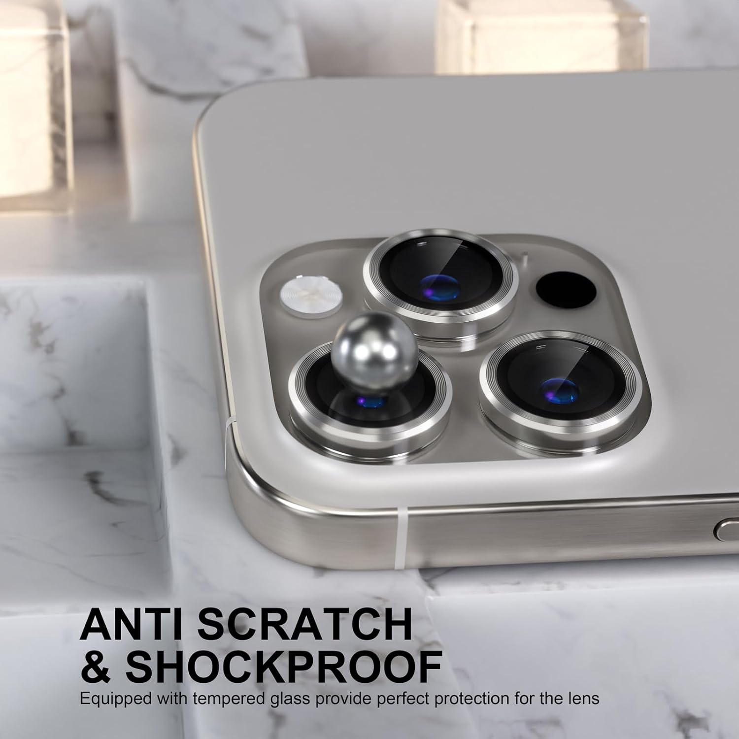 Choiche Compatible for iPhone 16 Pro/iPhone 16 Pro Max Camera Lens Protector, 9H Tempered Glass Camera Cover Screen Protector Metal Ring Decoration Accessories (Titanium Natural)