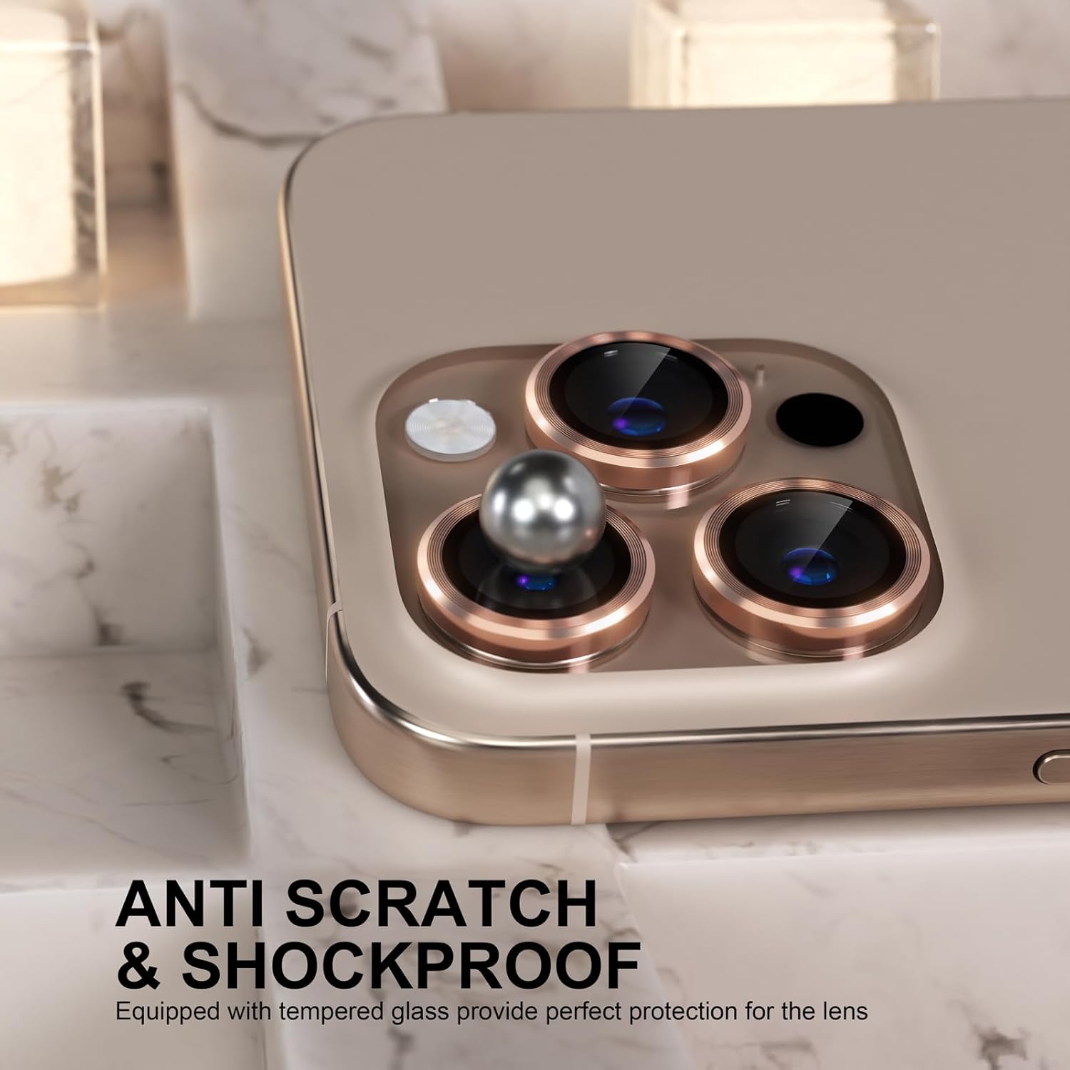 Choiche Compatible for iPhone 16 Pro/iPhone 16 Pro Max Camera Lens Protector, 9H Tempered Glass Camera Cover Screen Protector Metal Ring Decoration Accessories(Titanium Desert)