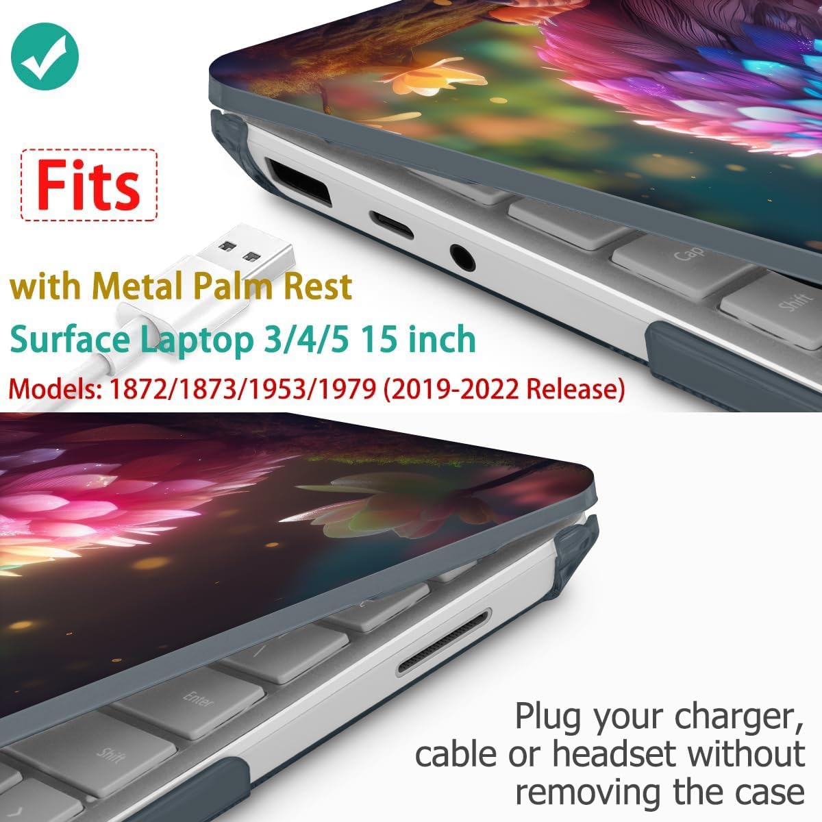 Tuiklol Case for 15 Inch Microsoft Surface Laptop 5/4/3 2022-2020, Model 1979/1953/1872/1873 Hard Shell Cover, Keyboard Cover+Screen Protector+Dust Plugs,Rainbow owl