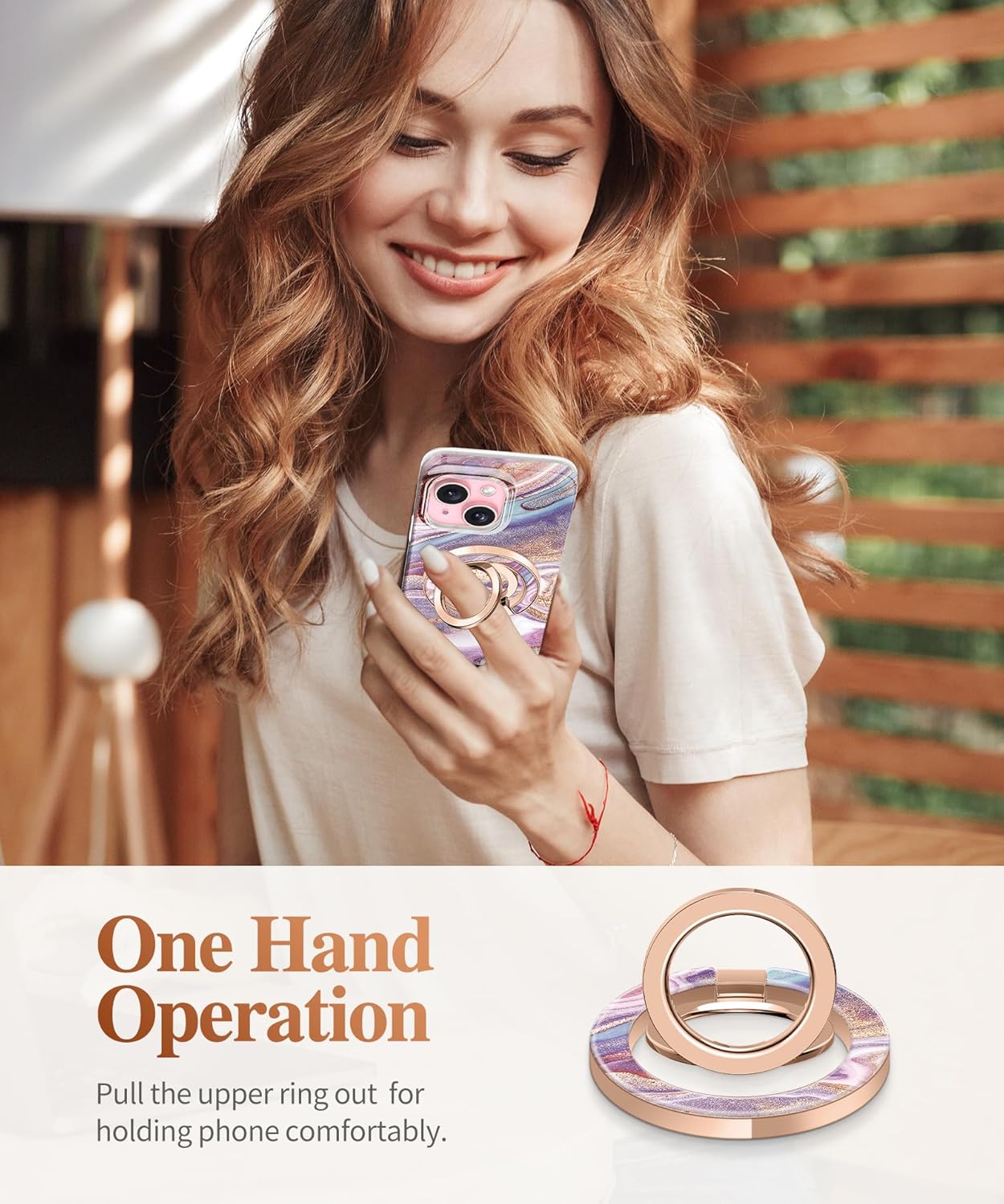 - [Premium & Comfortable Grip] The cell phone stand is made of high-quality zinc alloy metal material with electroplated coating that offers ultra-durability and unfading colors. Stylish Marble base adds style to your phone case. This ring is more ergonomically designed for a comfortable and secure grip. Perfectly adapted to various occasions of one-handed use, avoid phone drops.