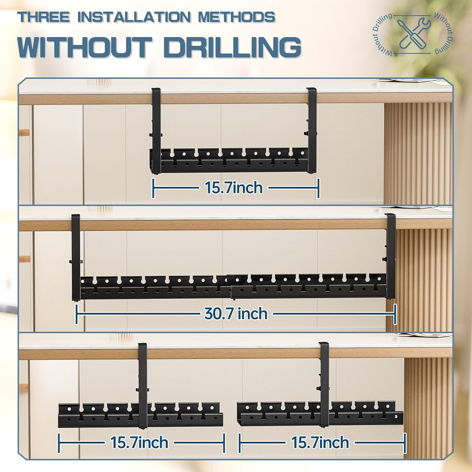 - 【No Drilling Required】: The standing desk cable management length can be easily adjusted between 15.7" and 30.7". It has a unique, high-strength metal, hollow structure design, and can be installed without drilling or adhesives, making it super easy to install and remove.