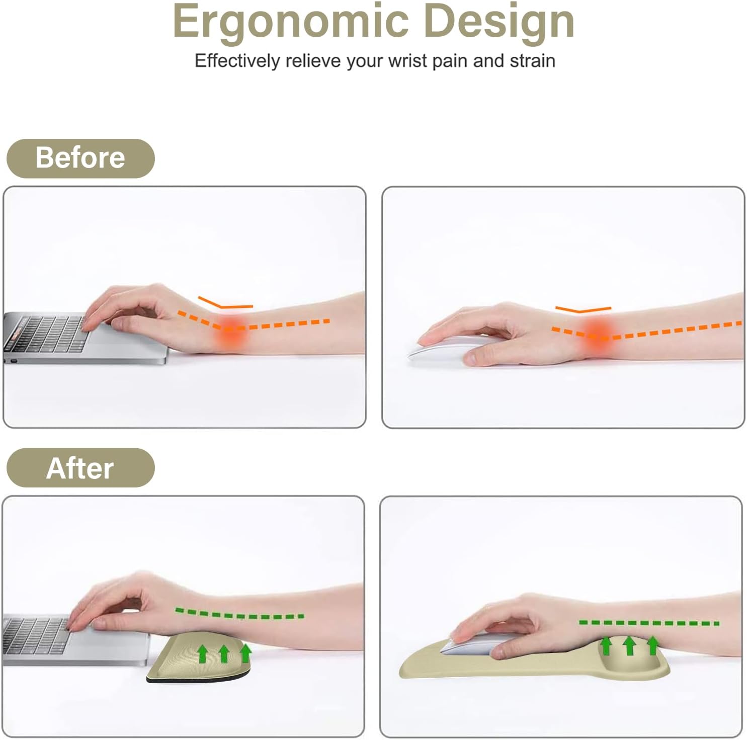 - Ergonomically designed with breathable/durable neoprene cloth and raised memory foam. Efficient for easy typing & pain relief. Offers soft support to relieve pressure and pain of your wrist, keep your wrist in a natural and comfortable state.
