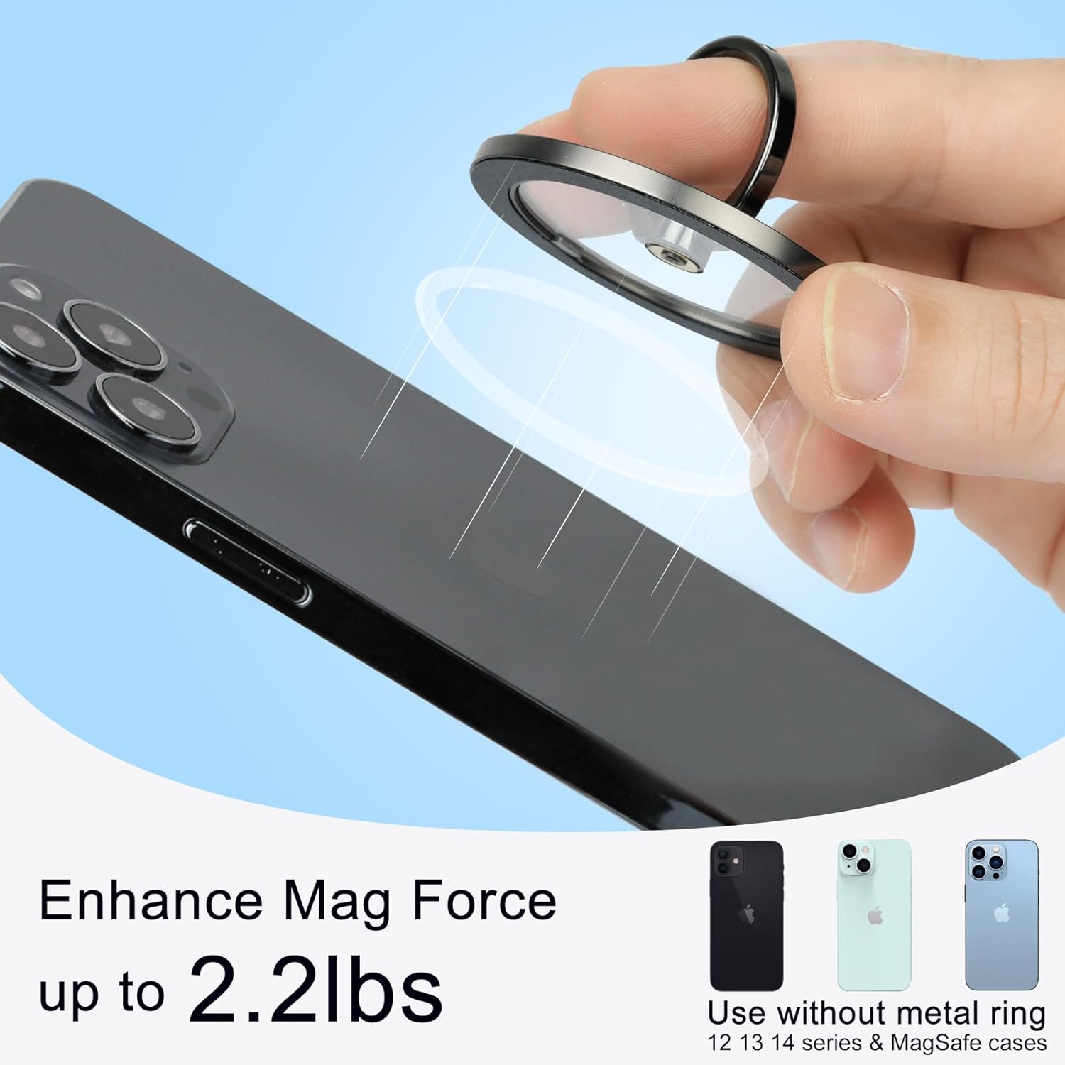 - Wide Compatibility: Offers broad compatibility, as it can be directly used with iPhone 12/13/14 Plus/Pro/Max/Mini. It seamlessly adapts to MagSafe magnetic phone cases, whereas non-MagSafe cases may use metal ring to enhance magnetic forces.