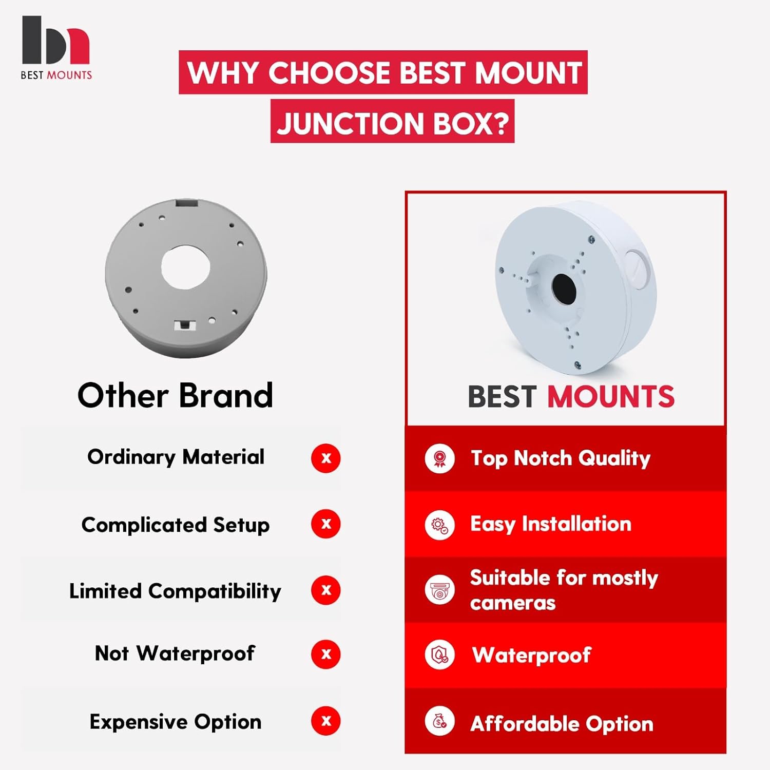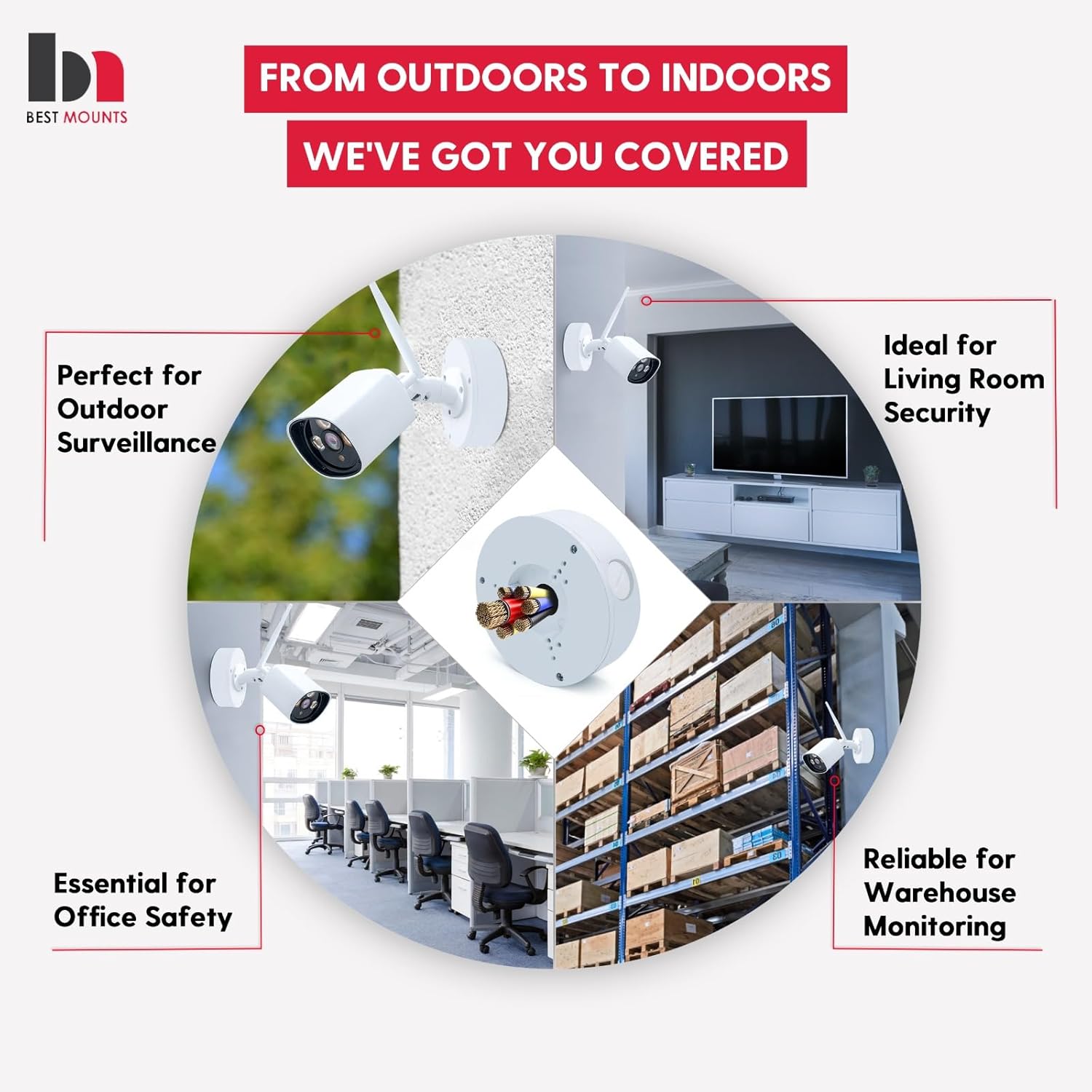 - πππππππππ π πππππππ: Best mount CCTV junction box is designed for versatility; our junction box is compatible with a range of camera models. It fits seamlessly with various camera brackets, including bullet cameras and solar panel mounts, offering a universal solution for different setups