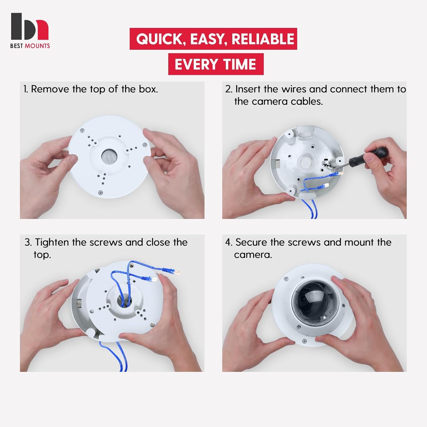 - ππππ ππππππππππππ: The security camera junction box comes with solid screws and offers easy mounting, saving you from worrying about damaging your bracket. Its sturdy, reusable design makes installation simple, allowing you to mount it according to your specific needs