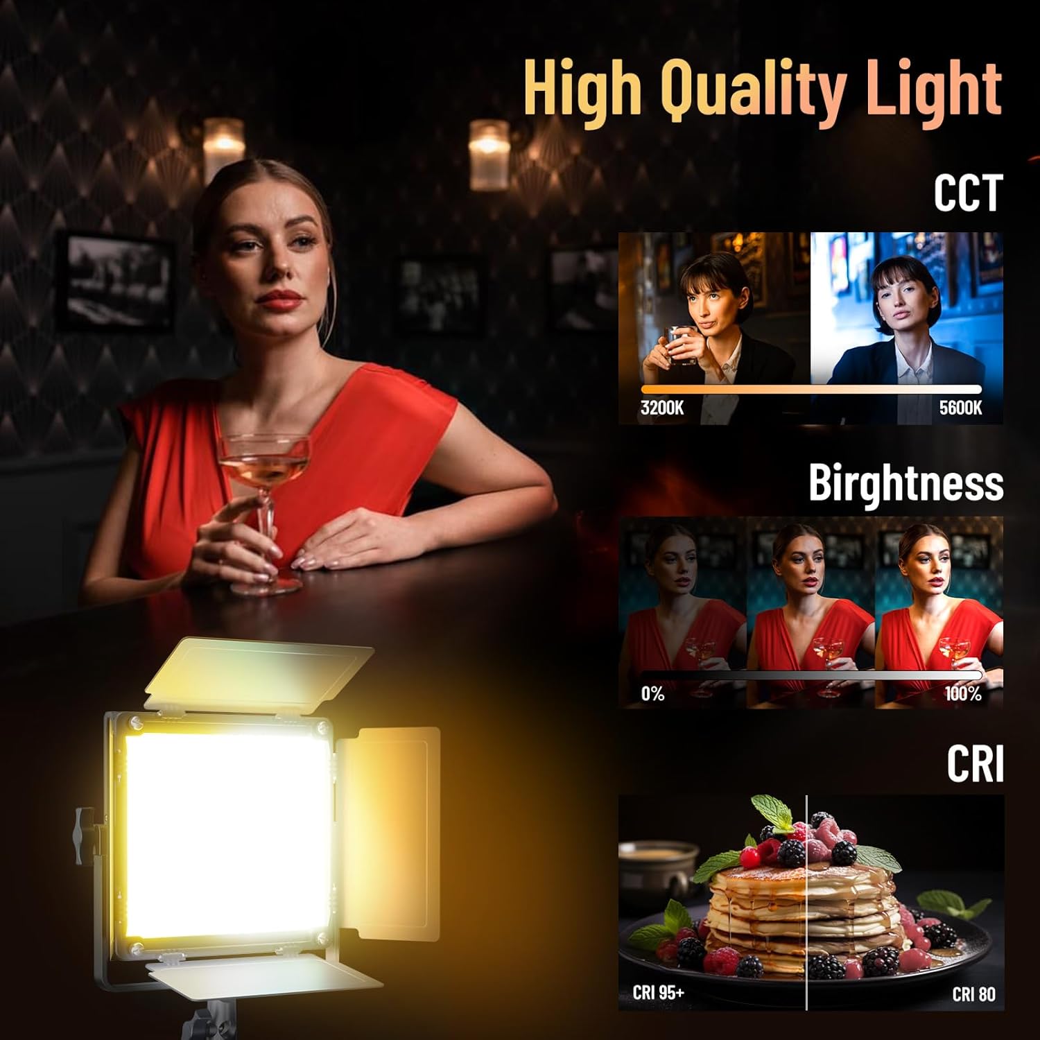 - 【Professional LED Video Light】The SPL210B features CCT mode to accurately adjust the color temperature from 3200K - 5600K, 0%-100% dimmable brightness. Outstanding color rendition with CRI 96+ and TLCI 97+, guaranteeing wide range of natural and vivid color. Built-in LCD display for accurate readings to match the light perfectly.