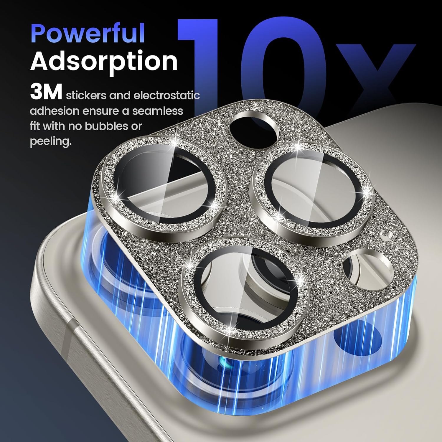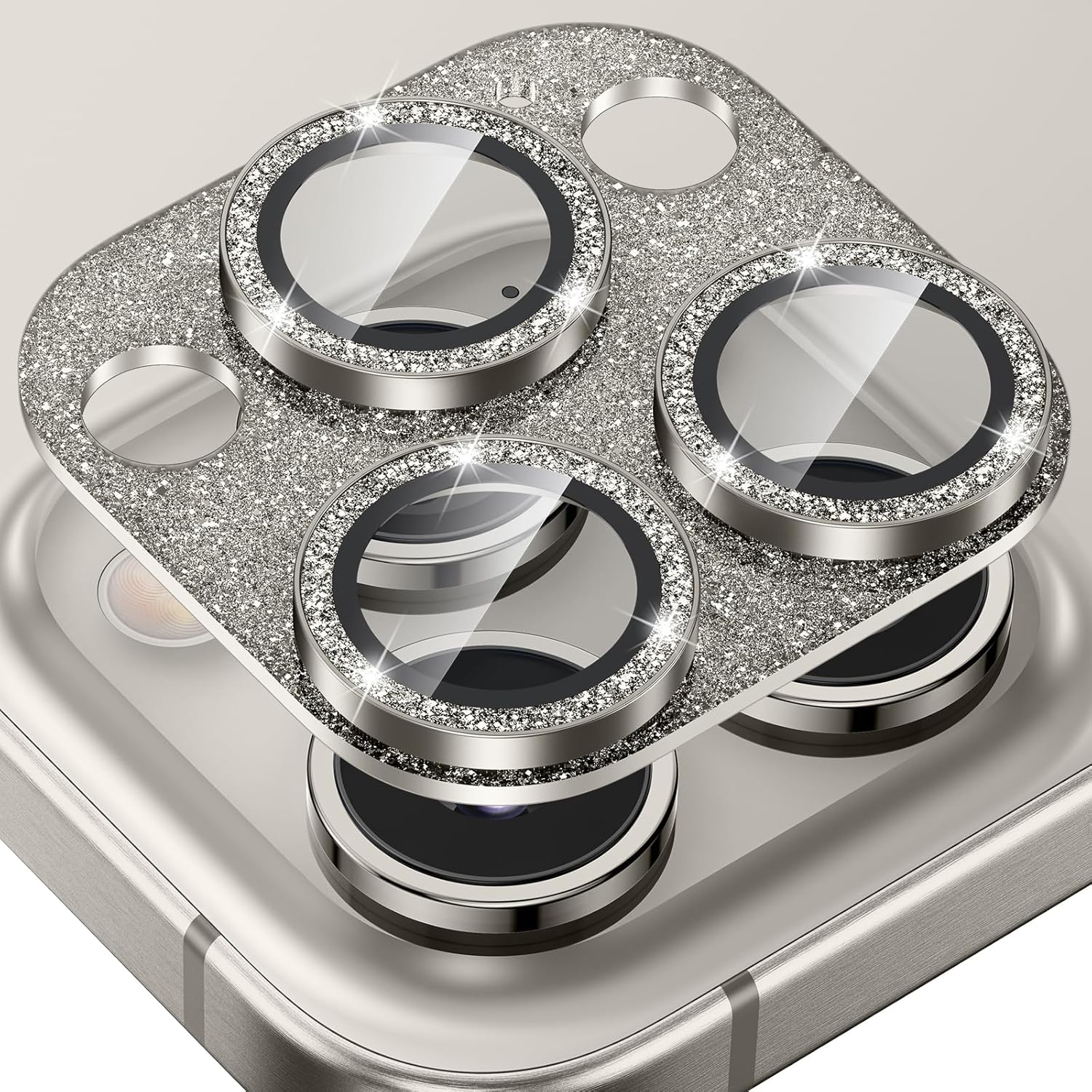 - GLITTER TEXTURE- Upgraded tempered glass camera screen protector cover built-in 3 single metal ring protector, which bling glitter reflects fascinatingly. It protects lens also makes it personalized decorations. Many colors are available for you to choose