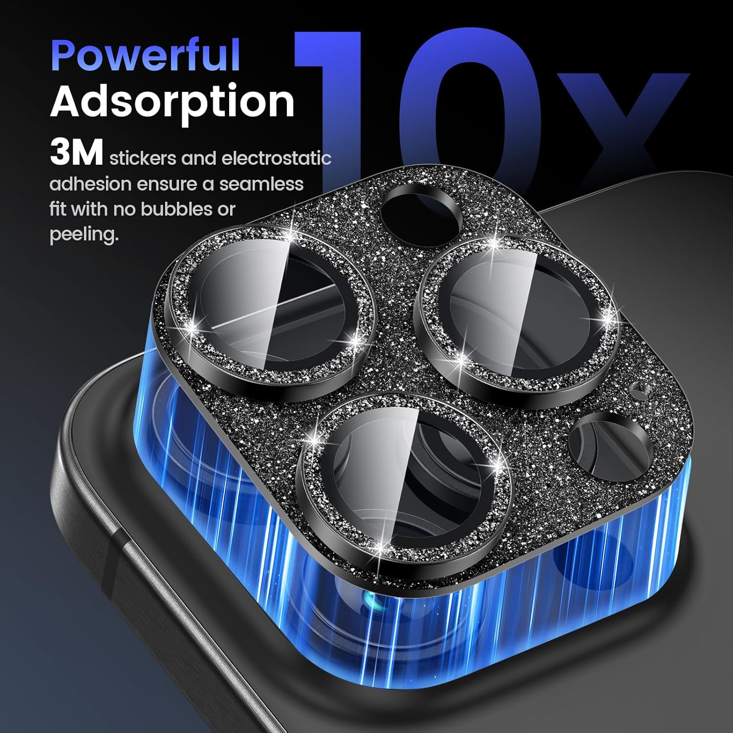 - GLITTER TEXTURE- Upgraded tempered glass camera screen protector cover built-in 3 single metal ring protector, which bling glitter reflects fascinatingly. It protects lens also makes it personalized decorations. Many colors are available for you to choose