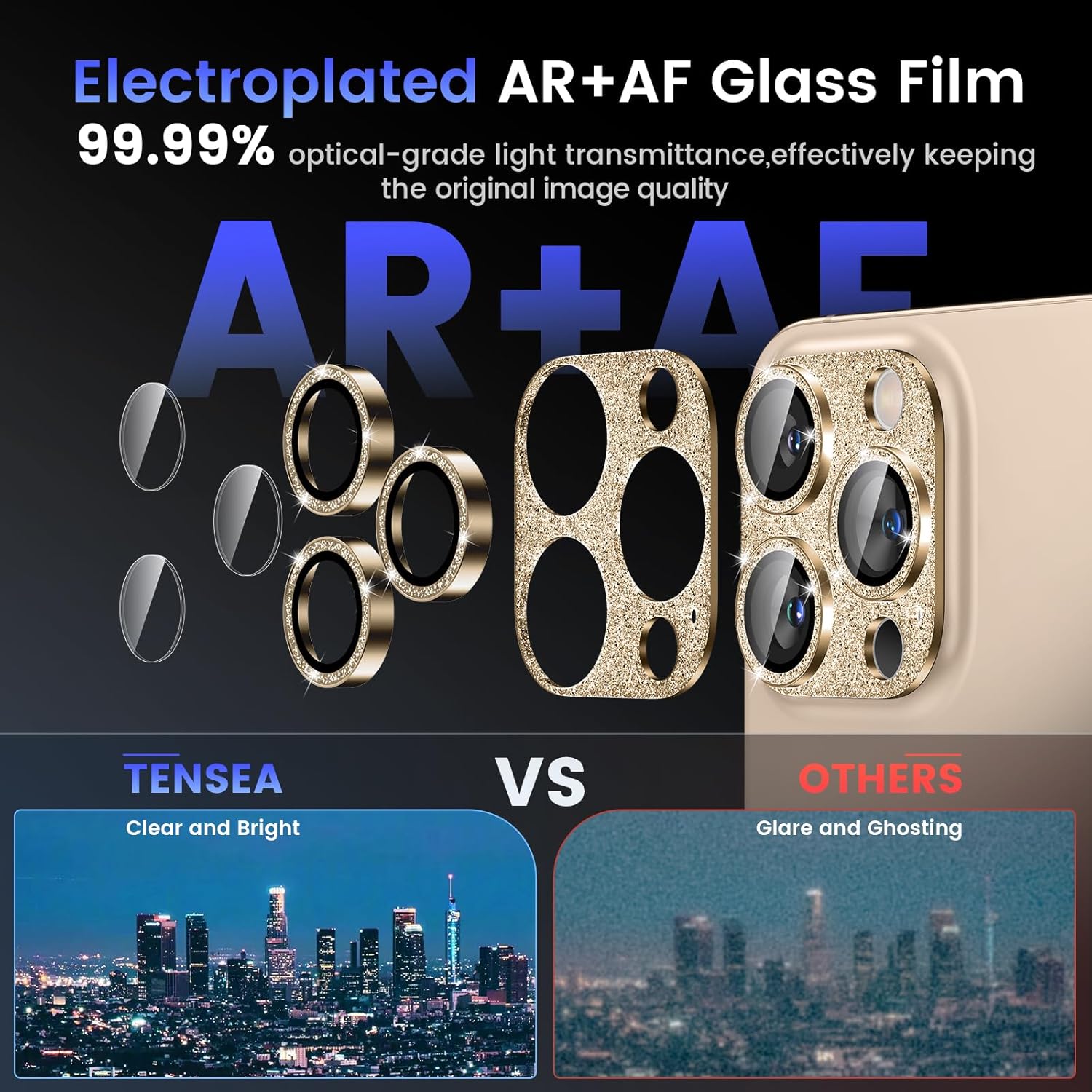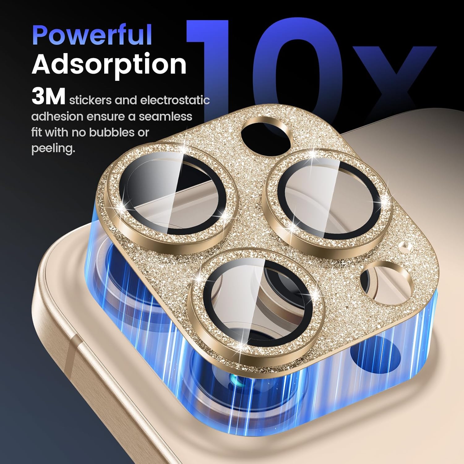 - GLITTER TEXTURE- Upgraded tempered glass camera screen protector cover built-in 3 single metal ring protector, which bling glitter reflects fascinatingly. It protects lens also makes it personalized decorations. Many colors are available for you to choose