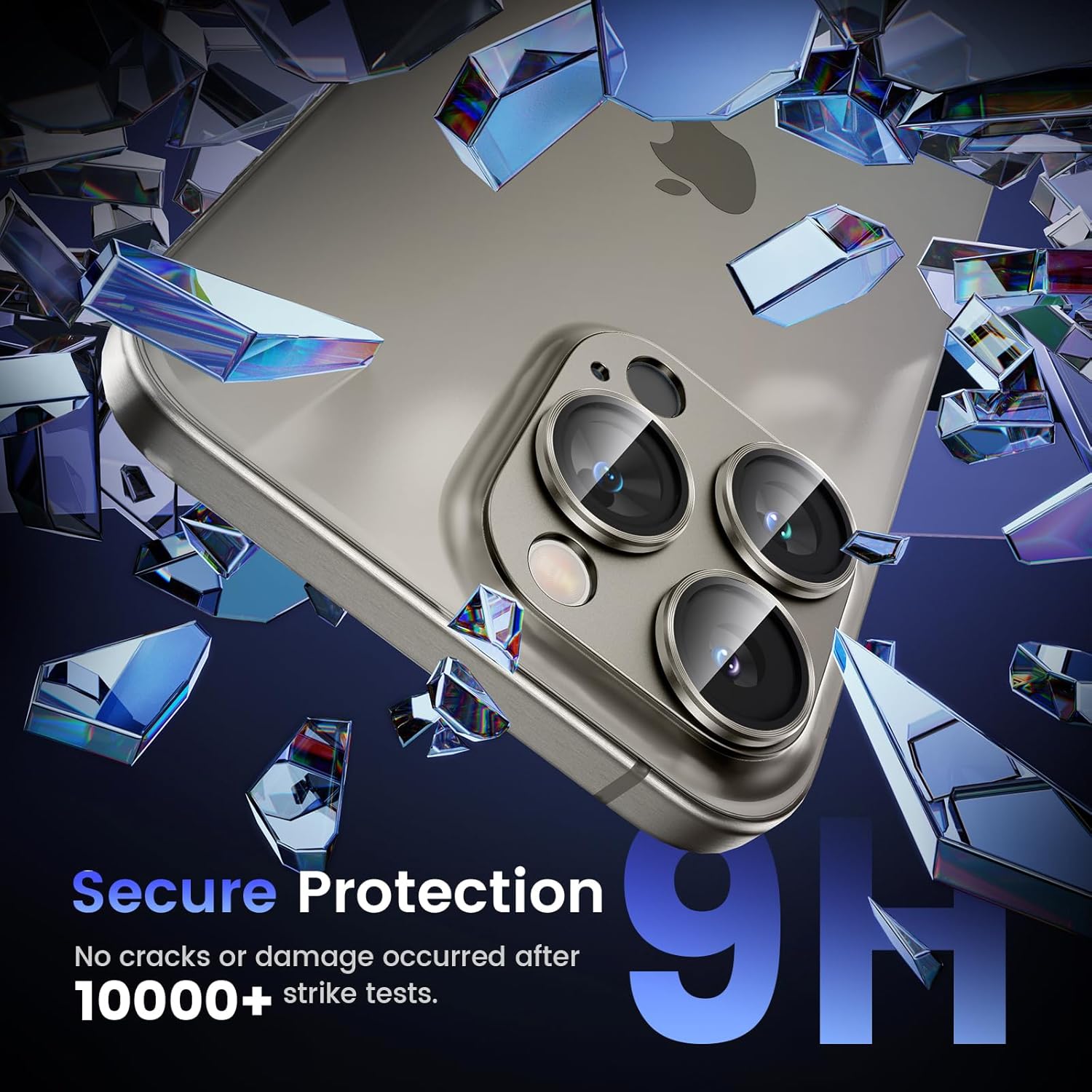 • FULL LENS COVERAGE- The metal camera lens protective film effectively protects your i Phone 16 Pro/16 Pro Max from scratches, dust and abrasion. The built-in cushions of lens film can prevent shock, falling or big impact to your camera