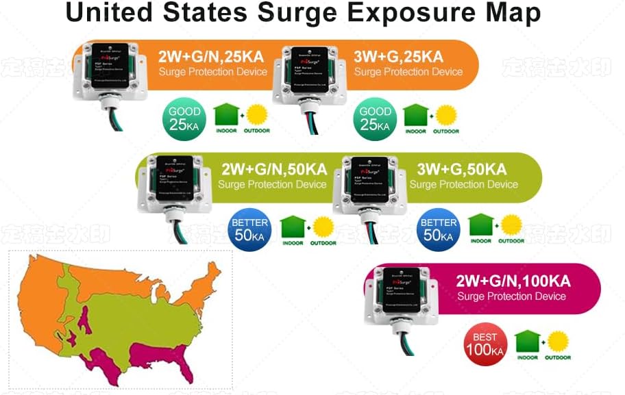 Whole House Surge Protection Device,Outdoor or Indoor,Single-Phase,3-Wire for 120/240V, 50KA(Surge Capacity per Phase),UL Listed