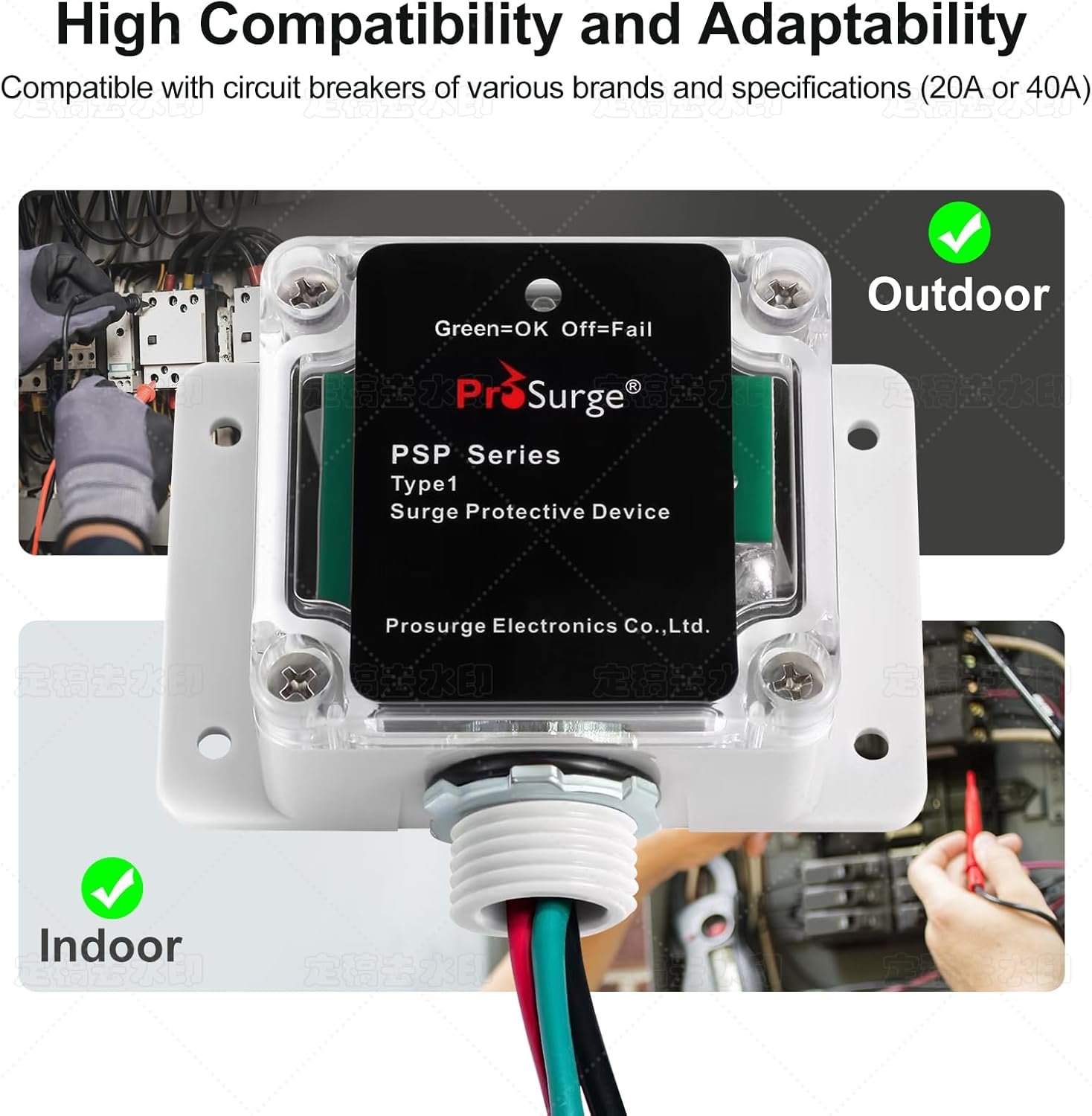 - The SPD is constructed in a waterproof plastic enclosure, with a LED light to demonstrate the protection status.