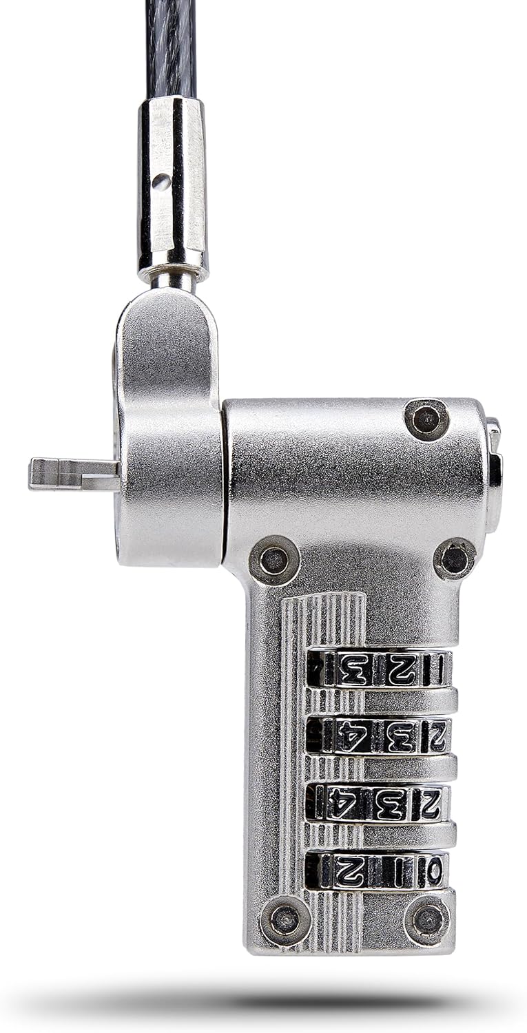 - UNIVERSAL 3-IN-1 LAPTOP LOCK: Compatible with Noble Wedge; K-Slot (T-Bar), and Nano lock slots using an adjustable lock tip; 6.6ft (2m) and 0.17in (4.4mm) thick cut-resistant carbon steel cable; Lock can withstand a pull force of up to 202lb (91.6kg)