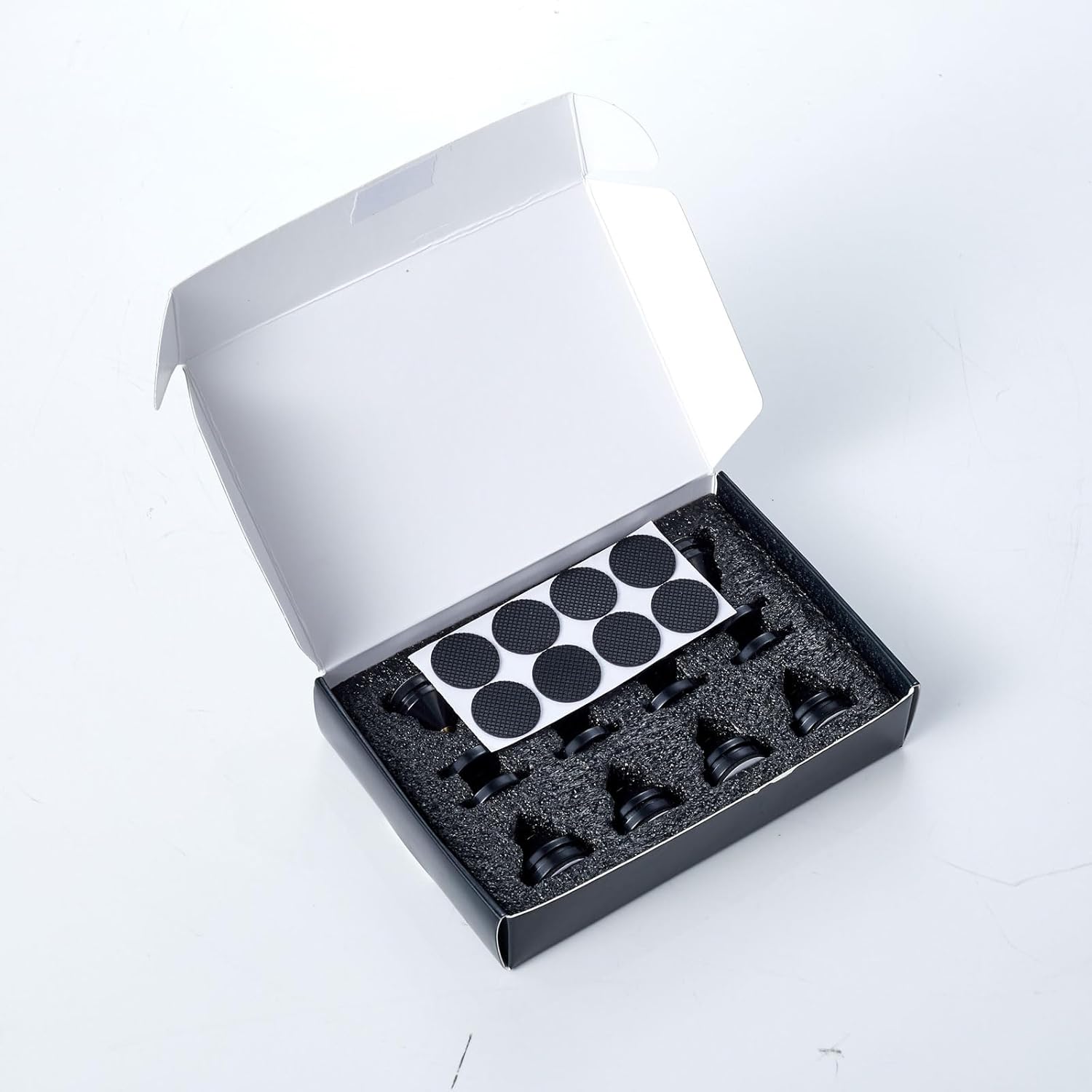 Speaker Spikes Floor Protectors 8pcs, Light Weight Shockproof Speaker Isolation Stand Feet for HiFi Amplifier, Subwoofer, DAC Recorder, Turntable, Cone Base Pad with Adhesive, Black