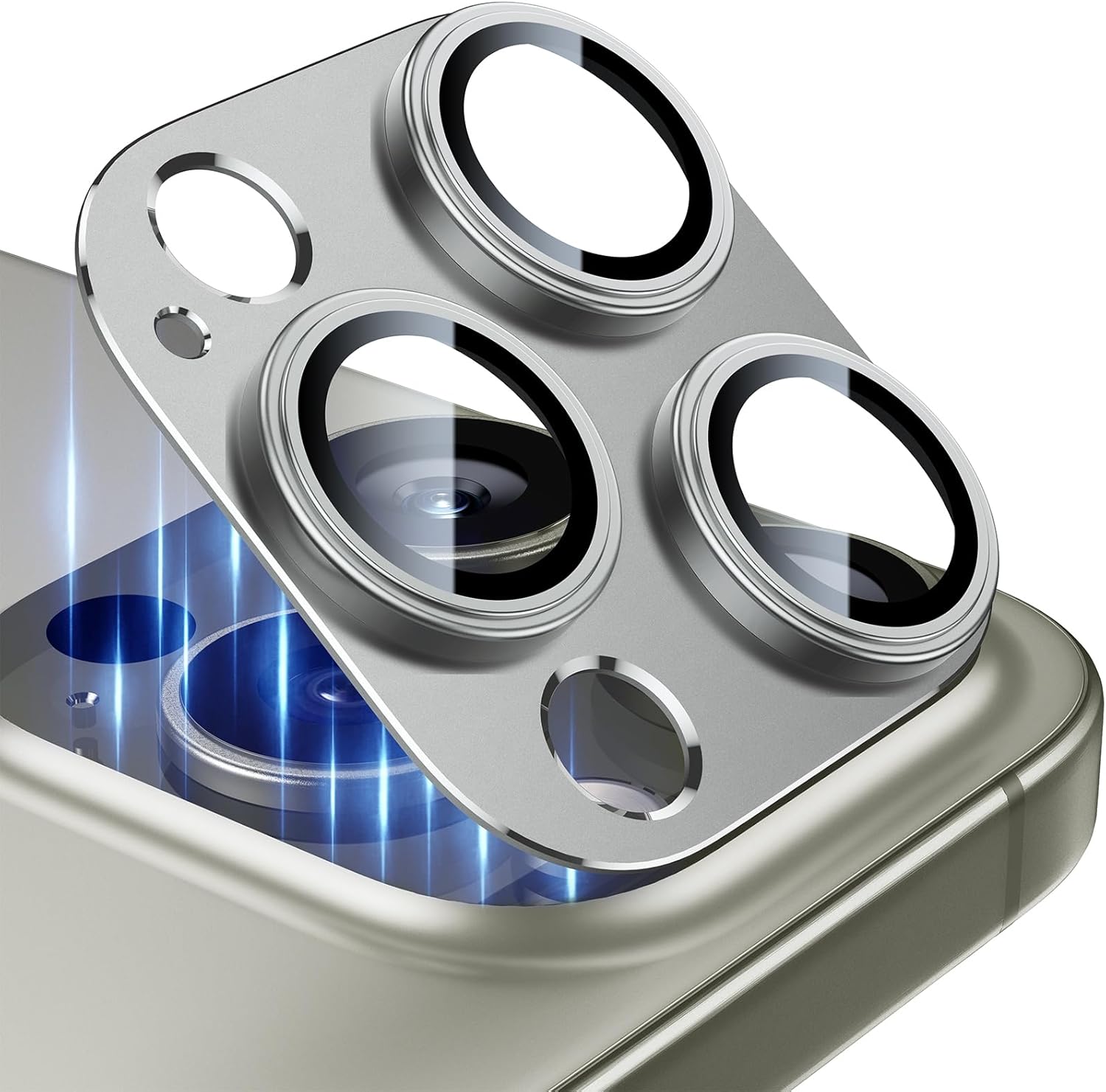 Esanik Upgrade 2 Pack for iPhone 16 Pro/iPhone 16 Pro Max Camera Lens Protector, Aluminum Alloy Metal matte Case Tempered Glass Camera Screen Cover, Scratch Resistant Case Friendly (Natural Titanium)