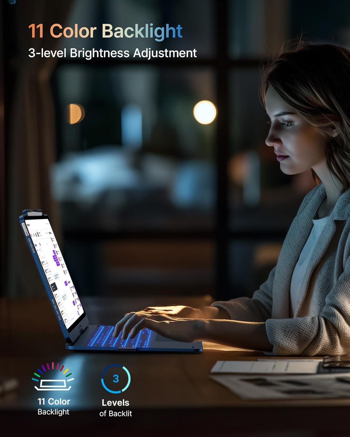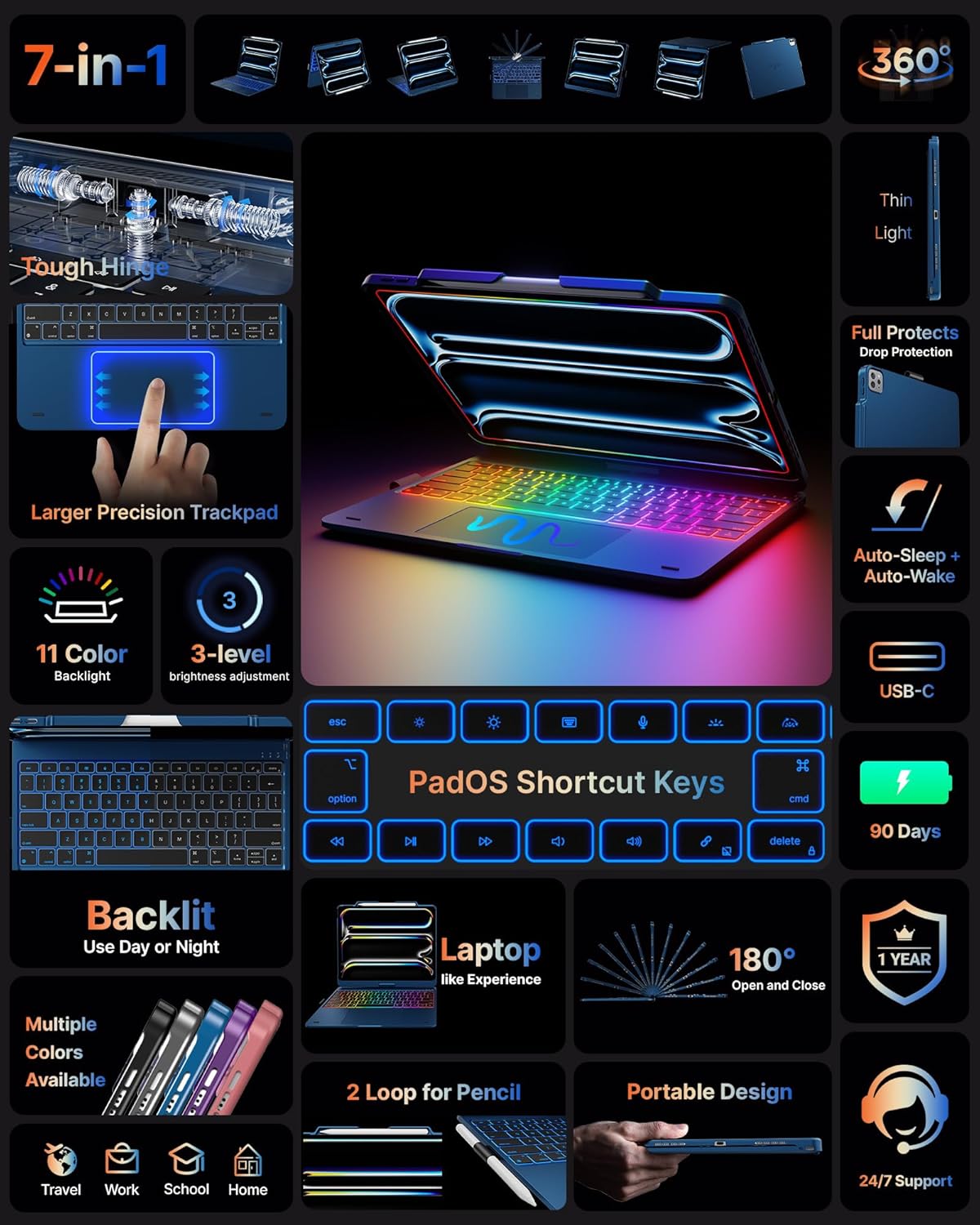 - 11-Color Backlit: 11-color backlit keyboard on this iPad 13 Pro case with keyboard allows brightness adjustment for excellent typing in any light; Includes full set of PadOS multimedia shortcuts for easy volume and music control.