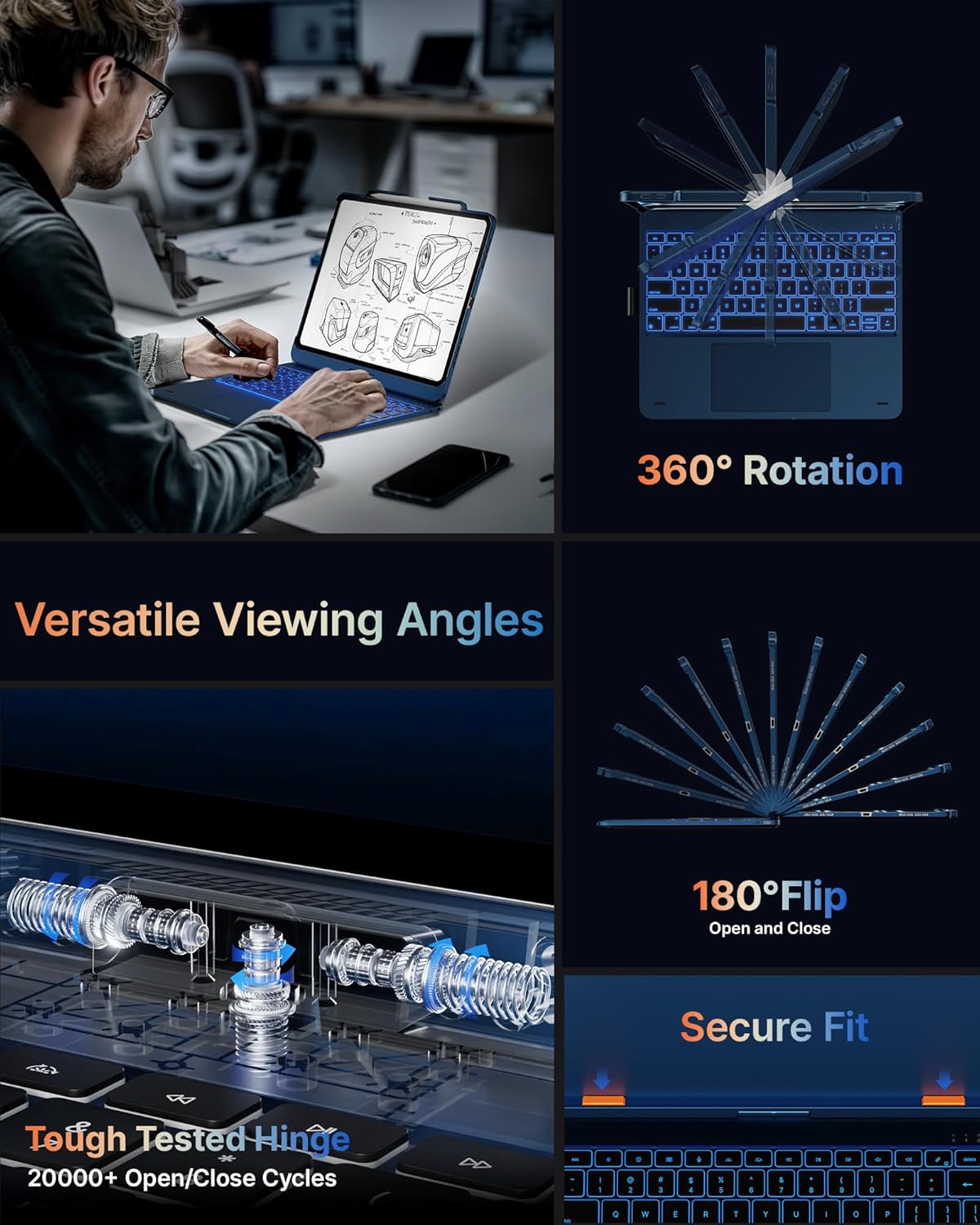 - Usage Modes: 360° hinge on this iPad Pro 13 inch keyboard offers 7 different usage modes for writing, drawing, watching videos, or browsing; Ideal for classrooms, critical tasks, or creative activities.