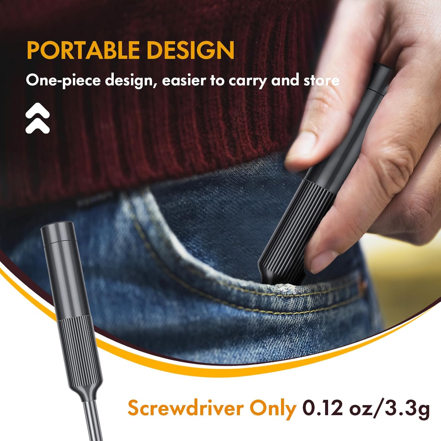 - Ergonomic & Portable Design: This mini screwdriver features a polyhedral aluminum alloy handle that offers a comfortable grip and superior control for one-handed operation. Its compact, lightweight design makes it an ideal tool for on-the-go repairs, fitting easily in your pocket or tool kit.