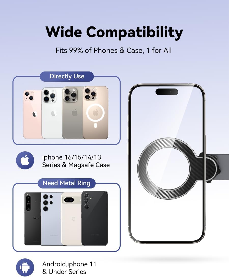 - Compatible Phone Models : No Need for Metal Ring: IPhone 16/ 16 Pro/ 16 Pro Max/ 15/ 15 Plus/ 15 Pro/ 15 Pro Max, IPhone 14/ 14 Plus/ 14 Pro/ 14 Pro Max, IPhone 13/ 13 Mini/ 13 Pro/ 13 Pro Max, iPhone SE, iPhone 12/ 12 Mini/ 12 Pro/ 12 Pro Max, Cell Phone with Magsafe case; Need for Metal Ring: iPhone XR/ iPhone XS/ iPhone XS Max/ iPhone X/ iPhone 8/ 8 Plus, iPhone 7/ 7 Plus, iPhone 6s/ 6s Plus/ iPhone 6/ 6 Plus, iPhone 5/ 5C/ 5s ect. Samsung Google Pixel Huawei OnePlus Android (Package is IncludeMetal Ring) No Need for Metal Ring: IPhone 16/ 16 Pro/ 16 Pro Max/ 15/ 15 Plus/ 15 Pro/ 15 Pro Max, IPhone 14/ 14 Plus/ 14 Pro/ 14 Pro Max, IPhone 13/ 13 Mini/ 13 Pro/ 13 Pro Max, iPhone SE, iPhone 12/ 12 Mini/ 12 Pro/ 12 P… See more