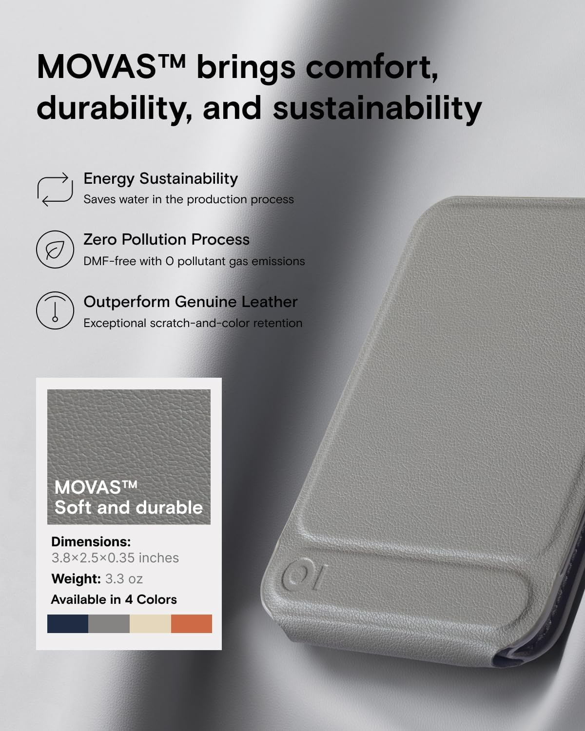 - 3-in-1 & Eco-friendly: This everyday carry features a phone tripod, phone stand and magsafe wallet with a simple fold to transform. It folds into an 8" phone tripod stand in a second. Crafted with the pioneering water-based MOVAS Vegan Leather, it's smooth to the touch while saving water from the manufacturing process.
