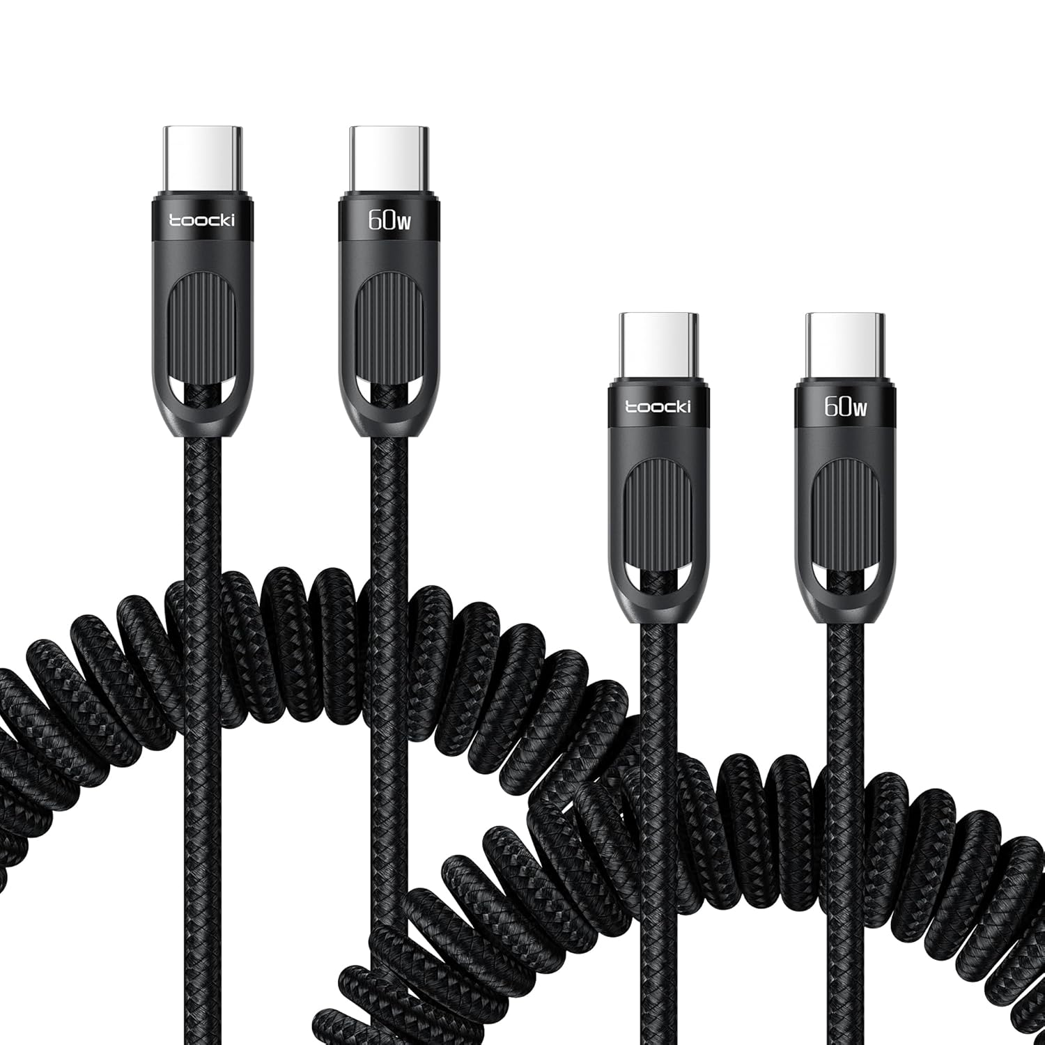 - Space-Saving Retractable Design: Toocki coiled USB C to USB C cable features a spring-loaded design with 1.5FT natural length and 5FT maximum stretch (2-3FT ideal working range). This compact retractable cable eliminates tangles in your car while maintaining easy access - the perfect short Type C charger cord for dashboards or cup holders