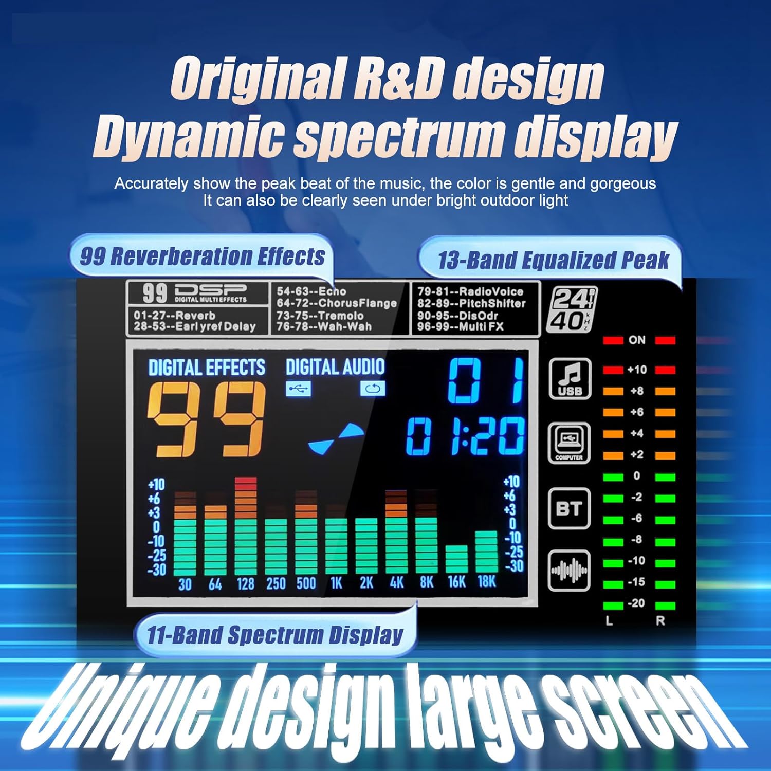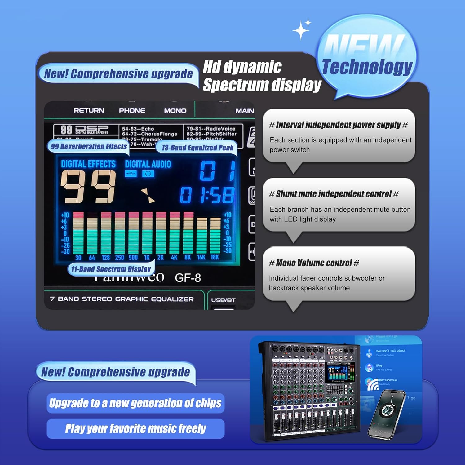 GF8 Pro Multi-Function 8-Channel Bluetooth DJ Sound Console - 7 Stage Equalizer, 99 Sound Effects, Independent Mute for Stage, Karaoke Live