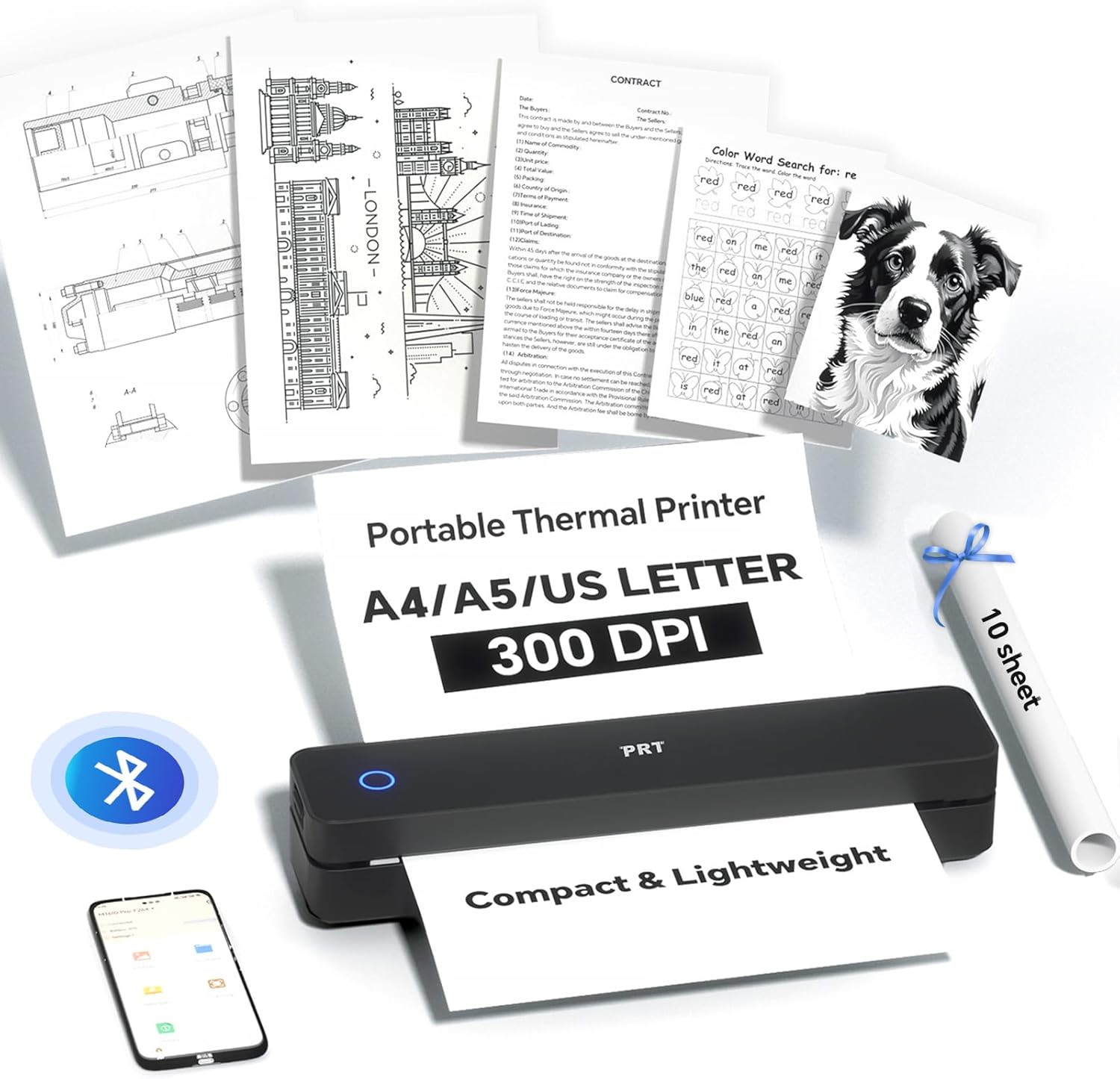 PRT Portable Printer Wireless for Travel, Inkless Bluetooth Compact Mobile Thermal Printer, Supports 8.5" X 11" US Letter, A4 A5, Compatible with iOS, Android, Laptop for Home Use, Office & Vehicles