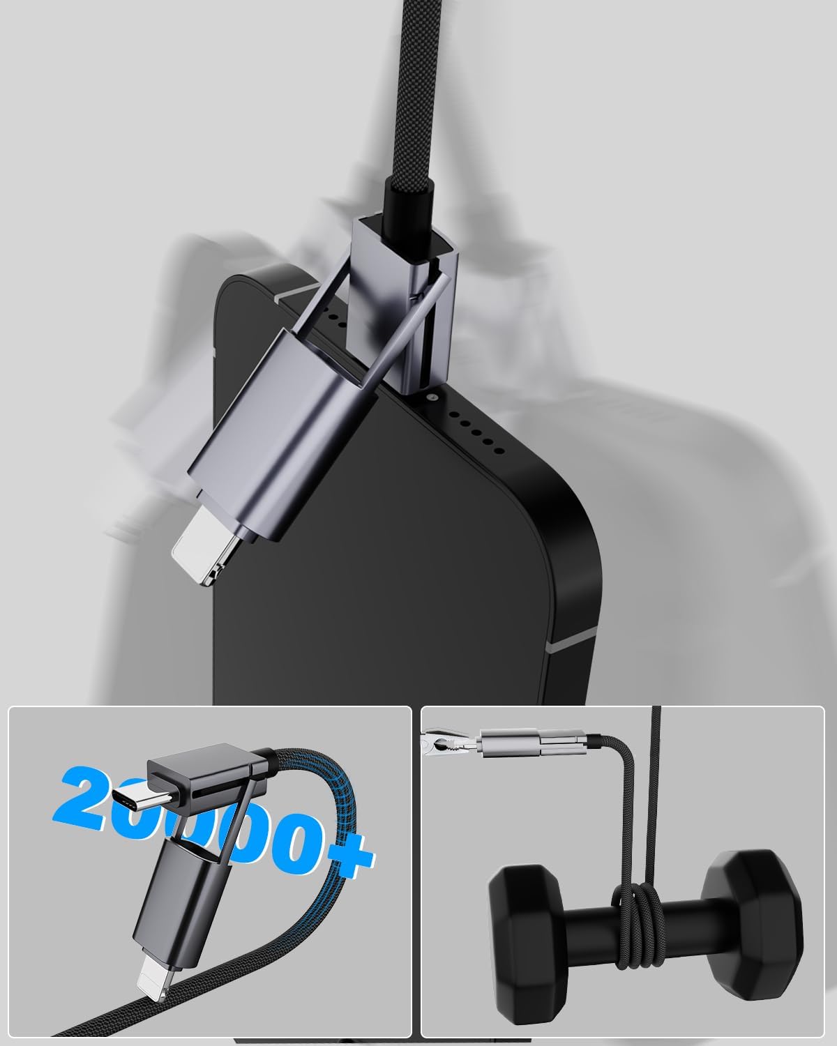 - New Upgraded 4-in-1 Multi Charging Cable: Simplify your charging setup with our versatile 4-in-1 usb-c cable. It combines 4 ports - USB-C to L port, USB-C to USB-C port,USB-A to USB-C port and USB-A to L port. Charge and sync your devices without the hassle of switching between multiple cables. (Note: If your devices want to achieve fast charging, please use a USB C power adapter not the USB charger)