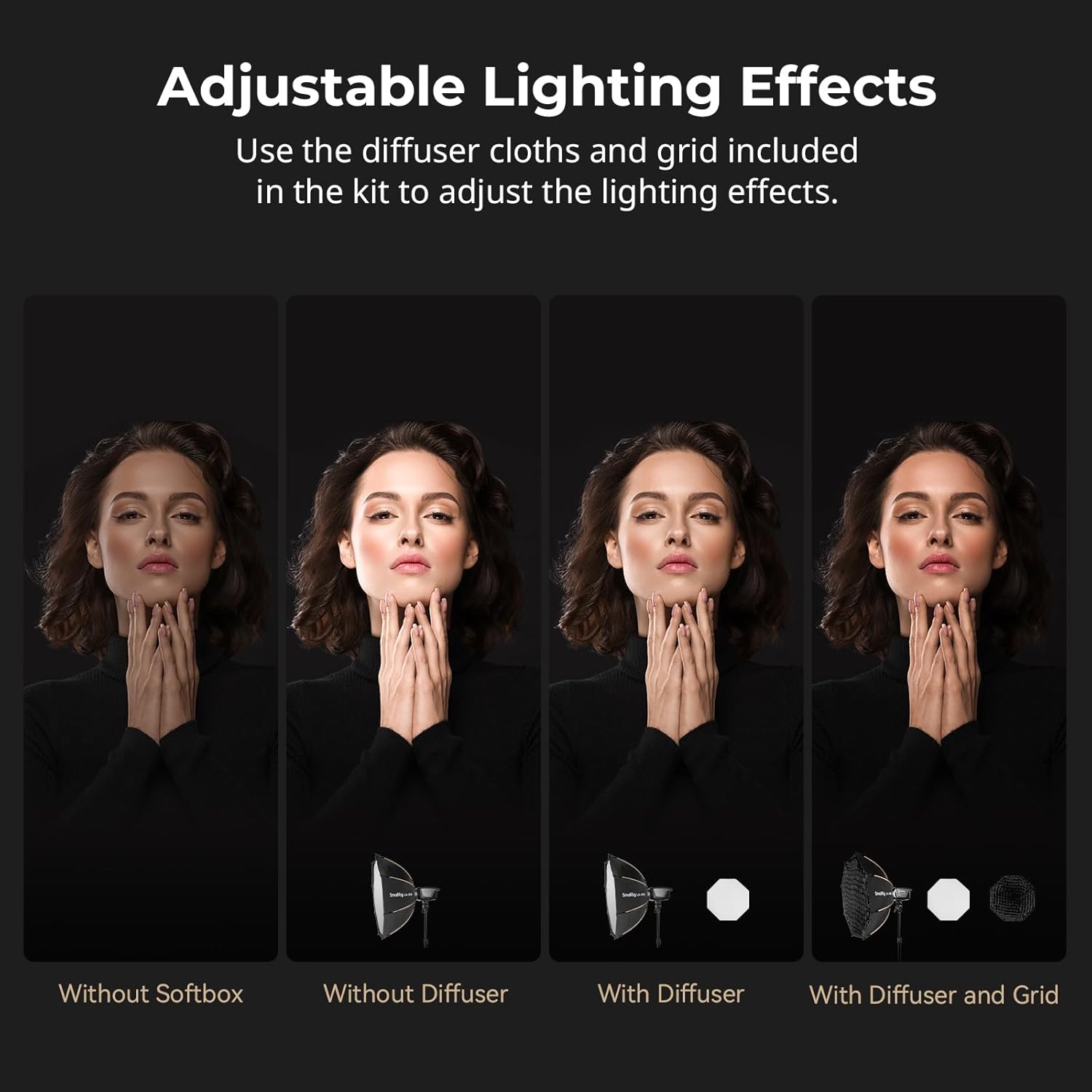 - Functional Accessories - This set includes 2 diffusion cloths and a 45Β° grid, allowing for enhanced softening effects and precise light control, catering to a variety of photographer needs. Additionally, it comes with a storage bag for easy organization and portability.