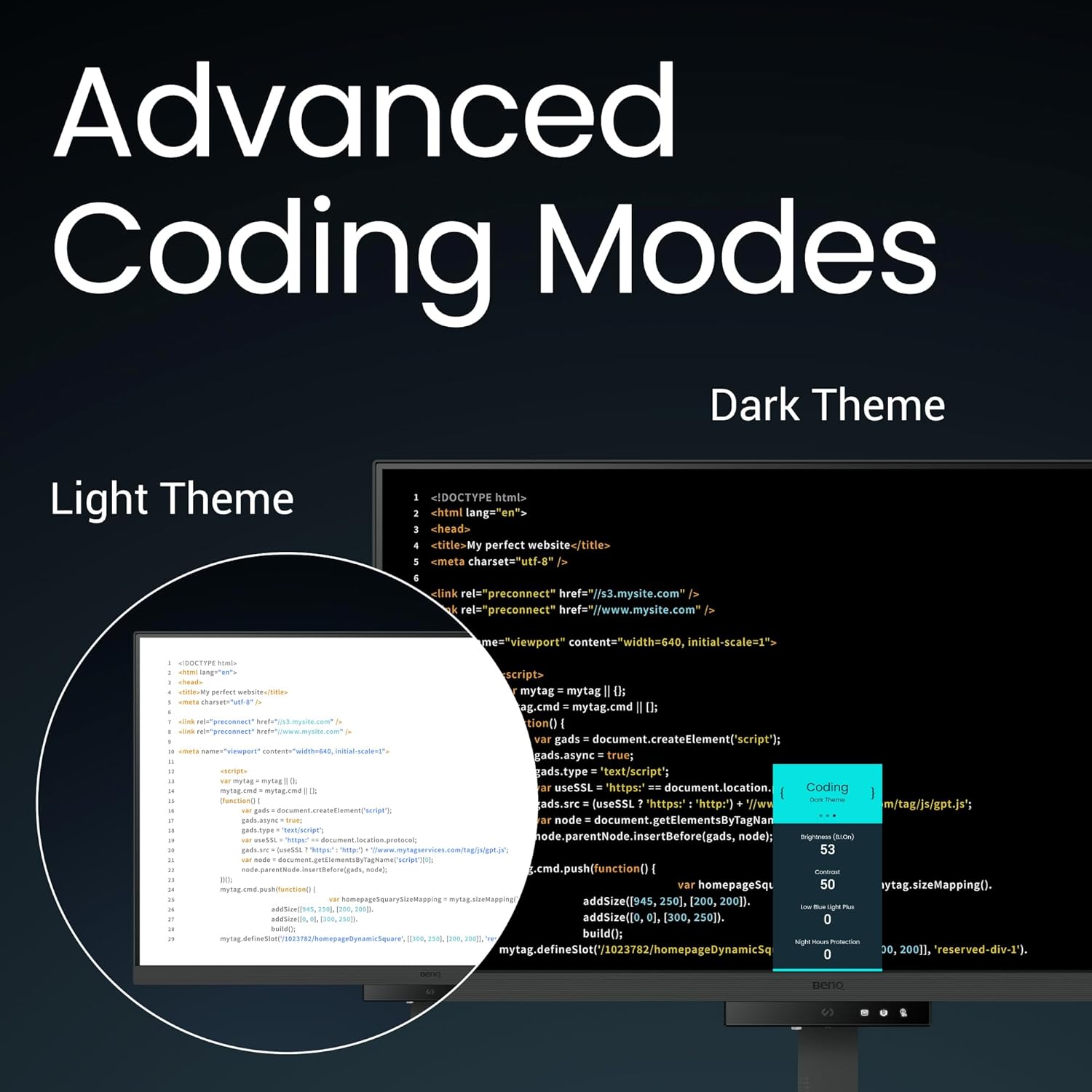 - [Coding Modes with Dark Theme and Light Theme] BenQ's advanced coding modes deliver clear fonts and better code differentiation, reducing eye strain.