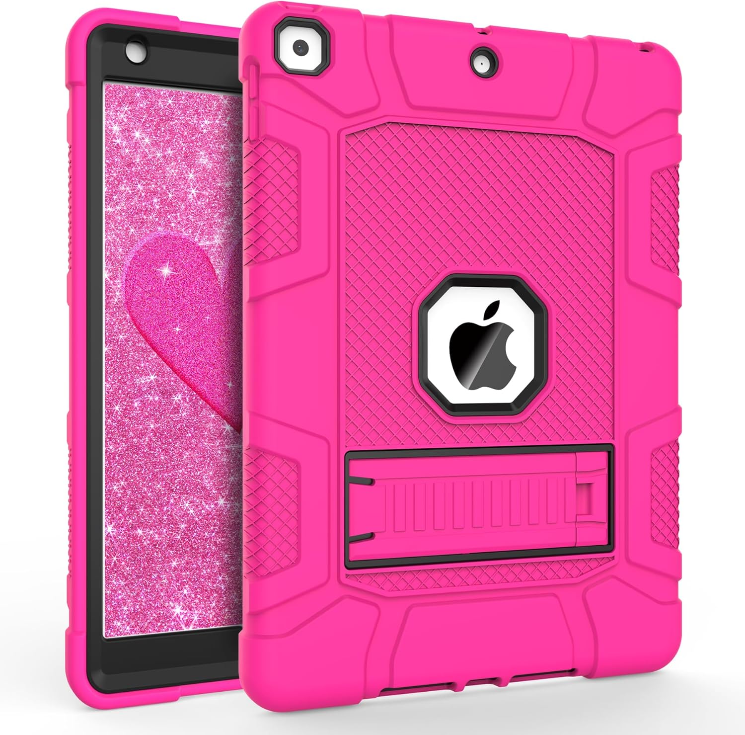 Rantice Case Compatible with iPad 9th Generation Case, iPad 8th Generation, iPad 7th Generation, Hybrid Shockproof Rugged Drop Protective Case with Kickstand for iPad 10.2'' (Rosepink+Black)