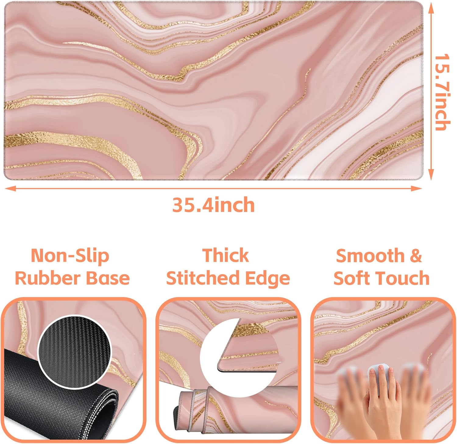 - Large Size:The size of the mouse pad is 35.4 x 15.7 inches.The large size desk pad covers a large area of the desktop and can protect the desktop.The mouse mat can be used to place keyboards,mice,and other desktop items,giving you enough space to move the mouse and have a good experience