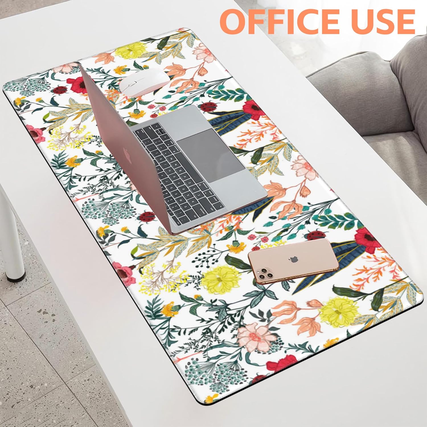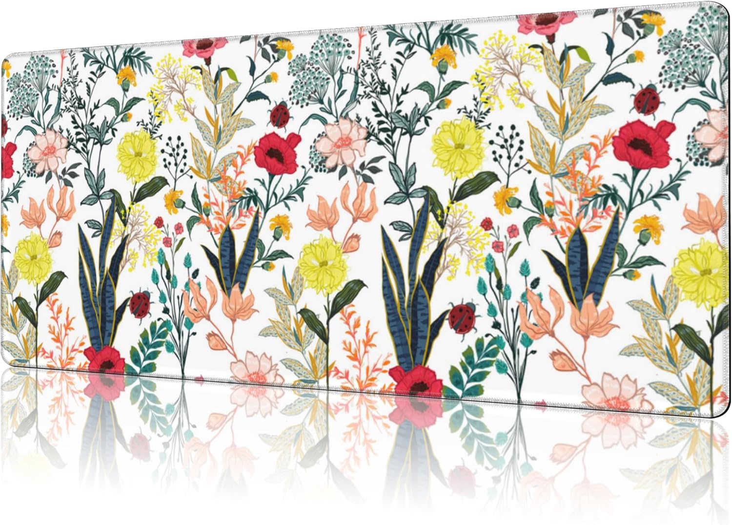 Mouse Pad Large Summer Flower Non-Slip Gaming Desk Mat with Stitched Edge Laptop Keyboard Desk Pad for Work Home Gaming (35.4 x 15.7 Inches)