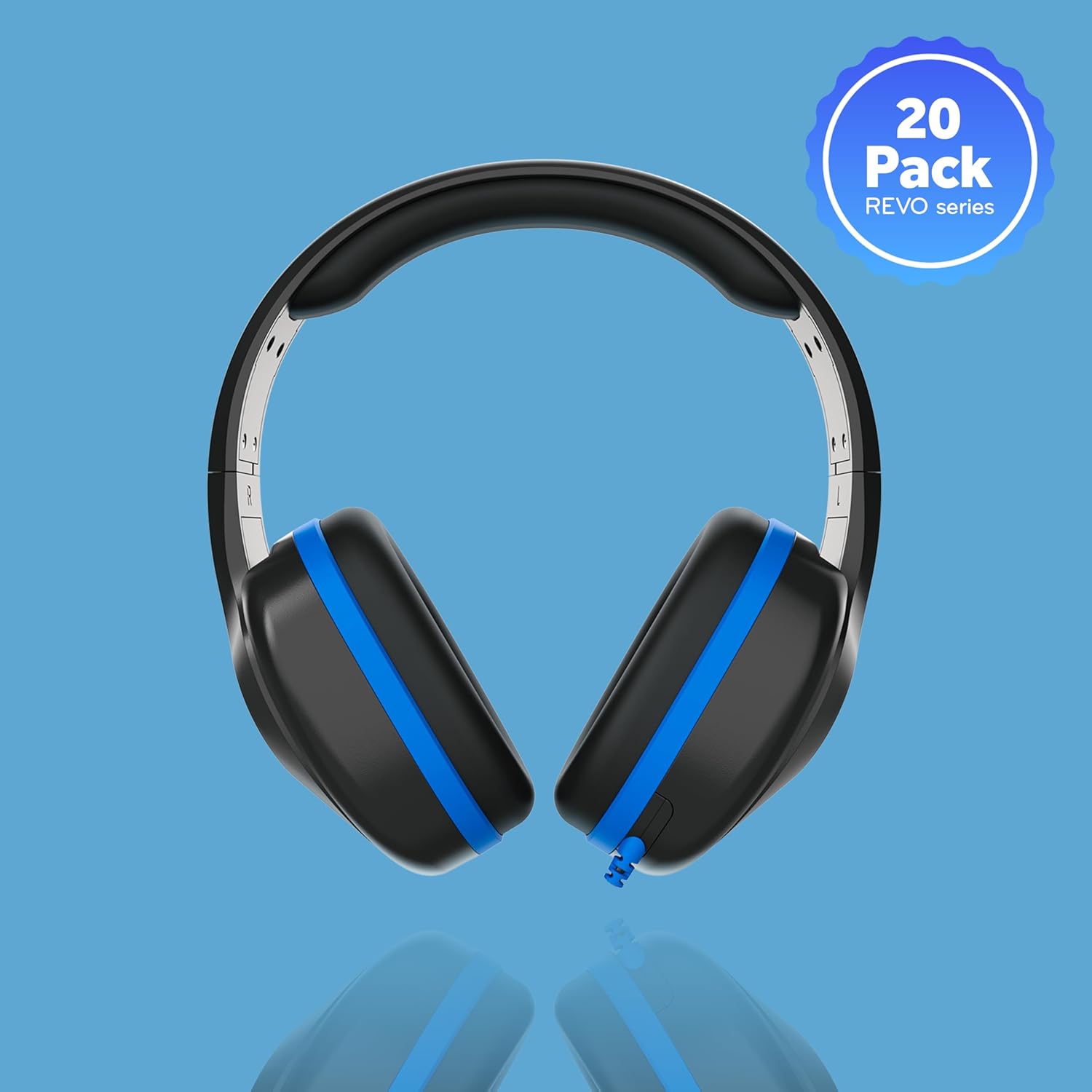 ThinkWrite Technologies REVO TW300, Premium Wired Over-Ear Headphones, Noise Reducing Headphones with 3.5mm Jack, Black - 20 Pack