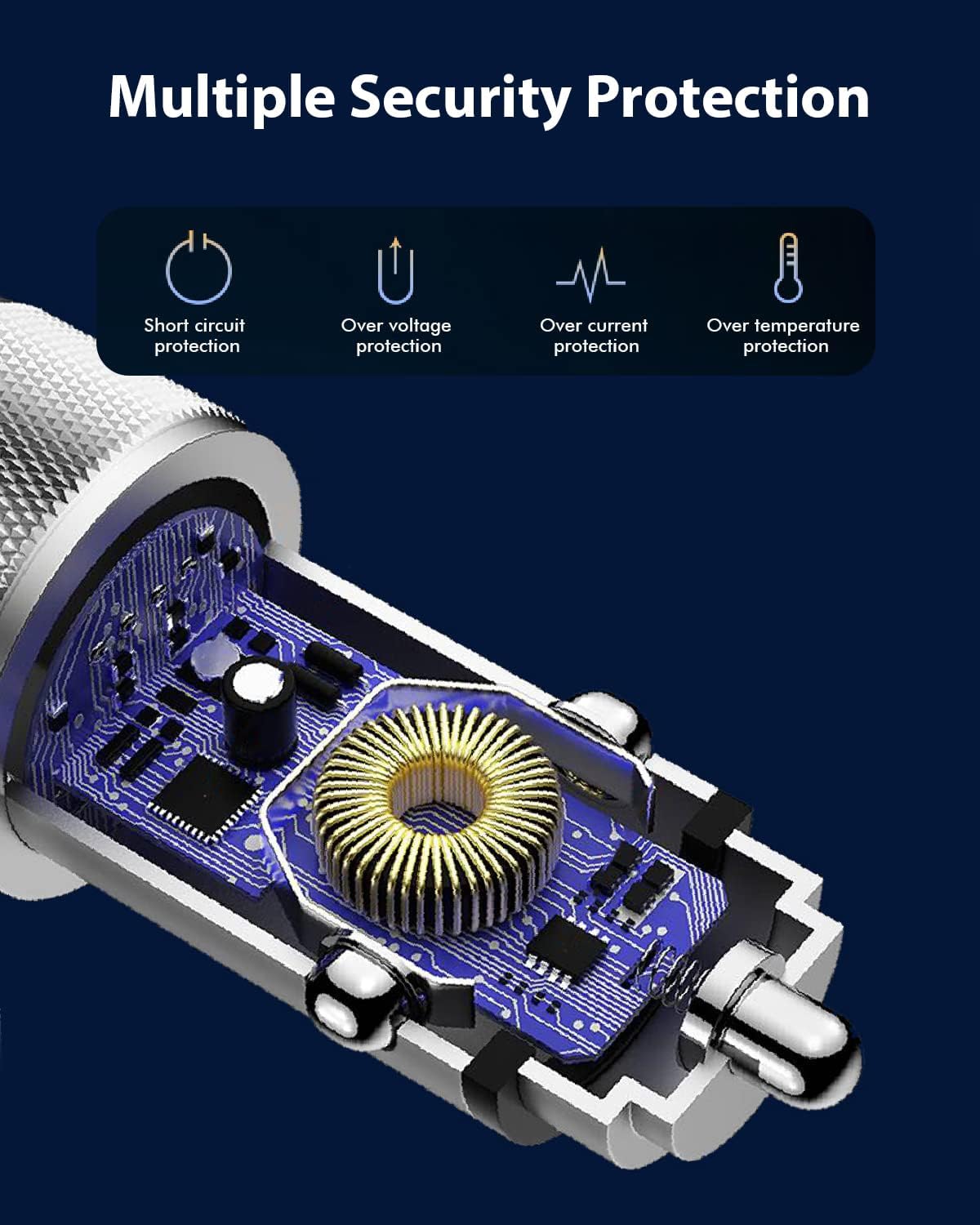- ćPerfect Design & Safe reliablećThis car charger is small and compact, does not occupy the interior space, the shell is made of high-quality materials, more wear-resistant, strong heat dissipation, long service life. Spring-type design, not afraid of any road conditions, Car charger fast charging adapter built-in smart chip, multiple protection of your car and equipment.