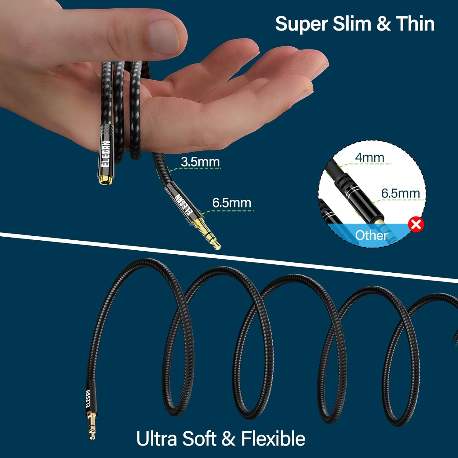 - Why Choose Us: Use this product to extend your headphone cable and expand its range, freeing you from being tied to your desk----Zinc alloy shell and tangle-resistant nylon braided exterior further enhance durability----The cable's outer diameter is only 3.5mm, thinner than most other aux cables on the market, making it more flexible and easy to pass through narrow holes----The connector features a stepped design, ensuring it won’t get stuck even with thicker phone cases---More slender and compact, easy to store, perfect for travel