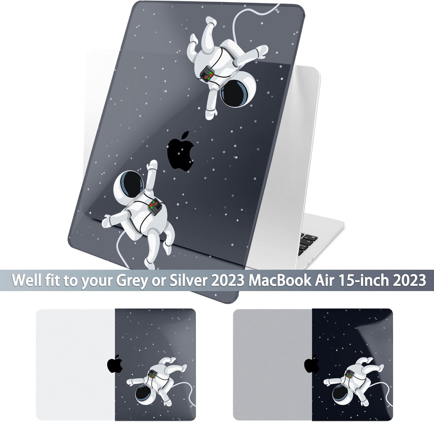Batianda Premium Case for New MacBook Air 15 inch 2025 2024 2023 with M4 M3 M2 Chip, Designed Black Protective Plastic Hardshell & Keyboard Cover & Screen Protector, Cosmonaut